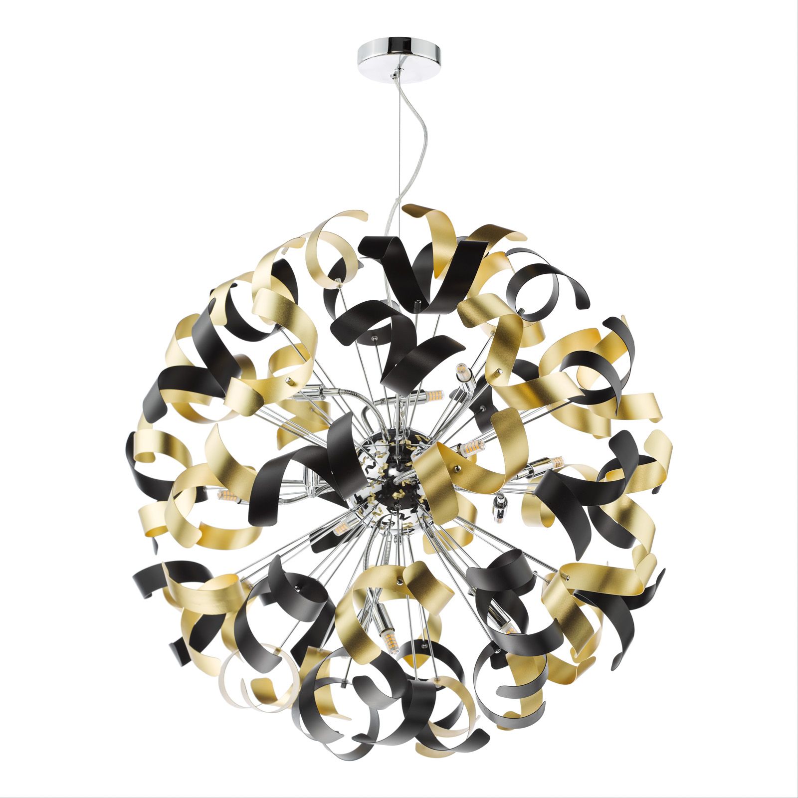 Swash 12 Light Pendant Polished Chrome With Black & Gold Ribbons