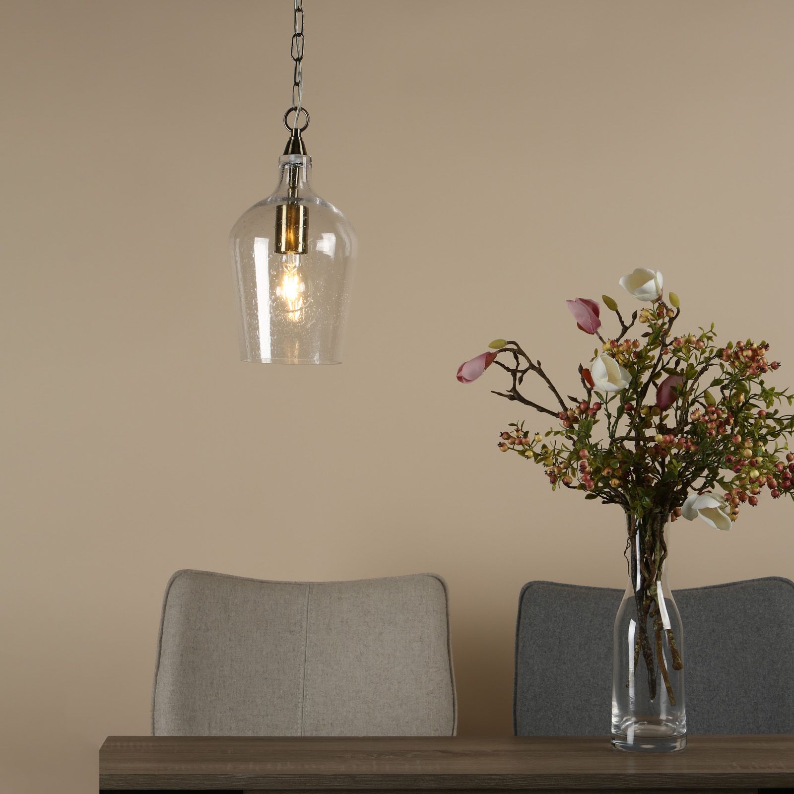 The Nida single pendant light looks great in a trio above a long table, or breakfast bar, but also works great in hallways and lounges. We've also seen them used in the bedroom as a bedside lamps hanging low over side tables freeing up space on the night stand.
