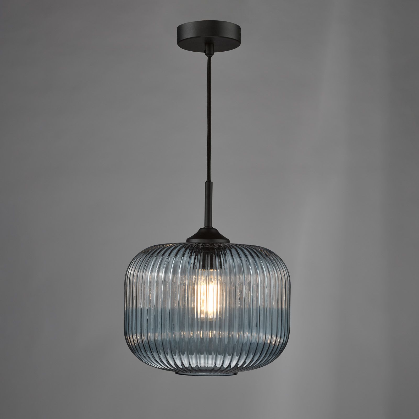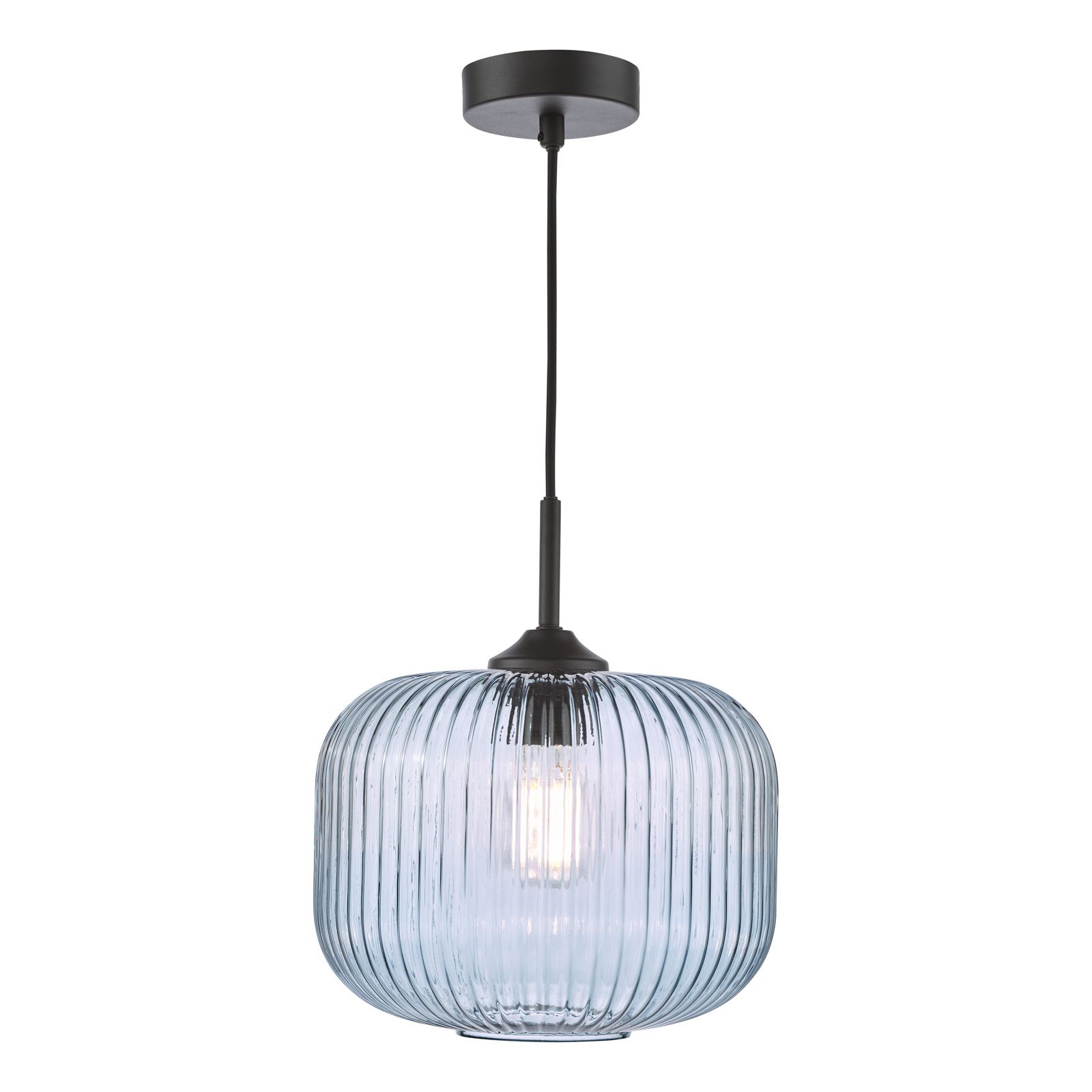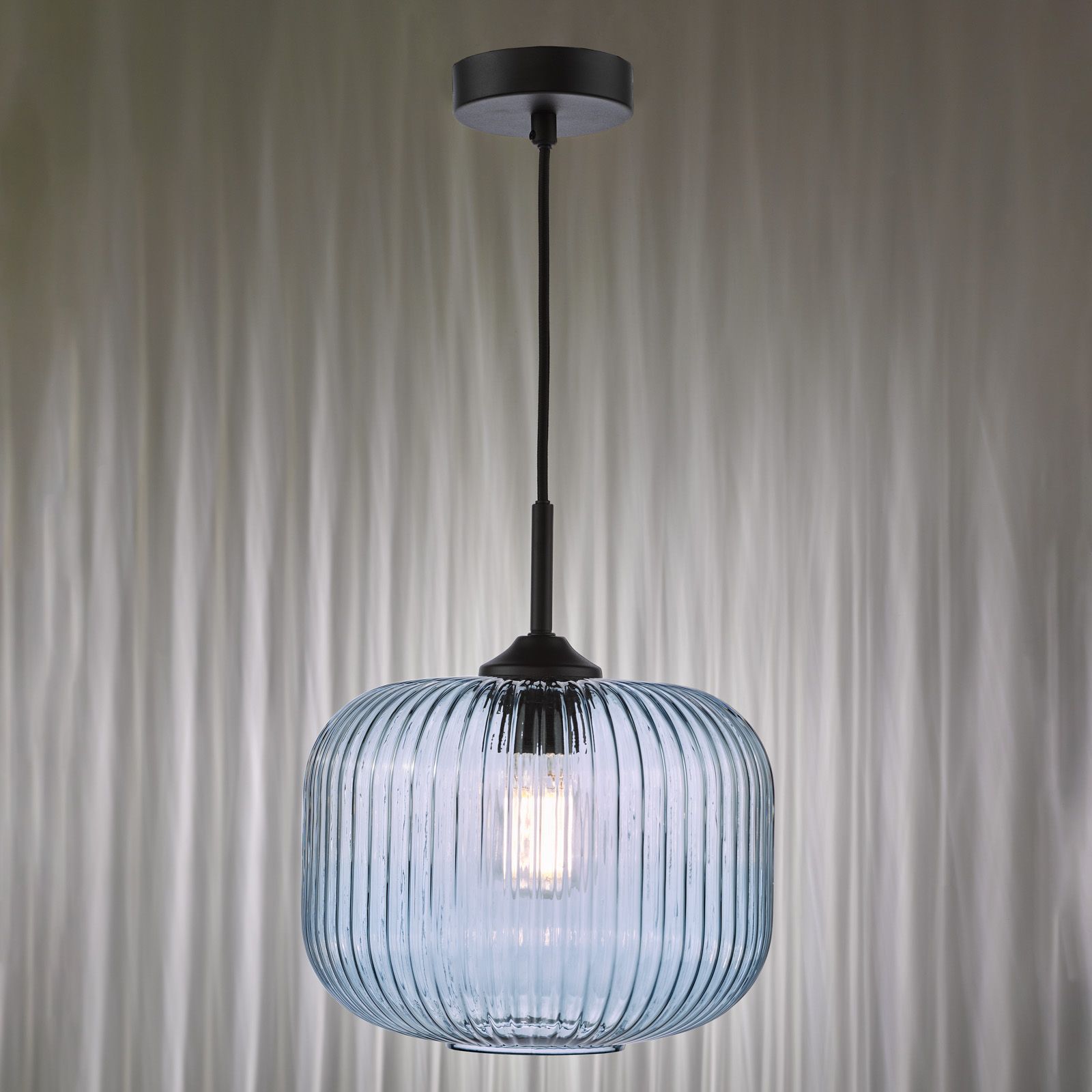 Demarius Pendant Matt Black and Blue Ribbed Glass