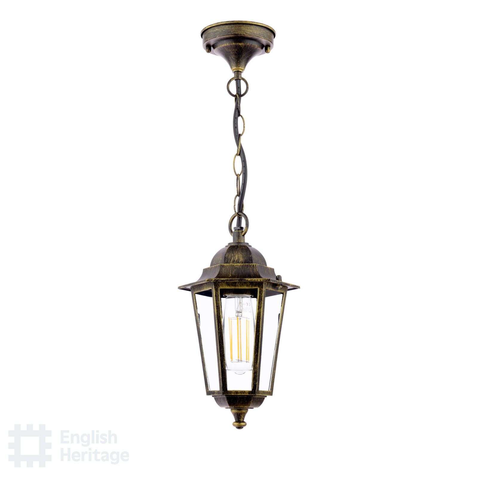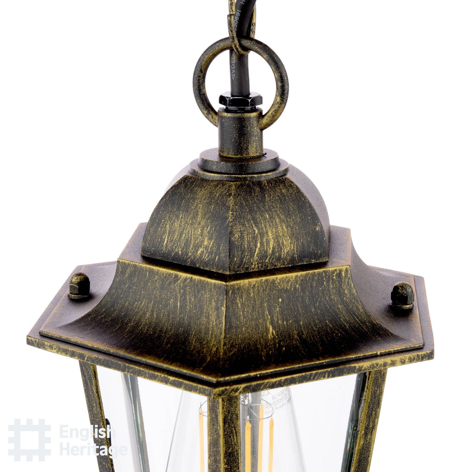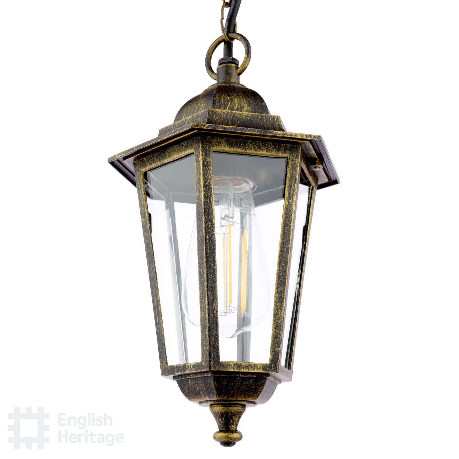 Audley End Outdoor Pendant Hand-brushed Black/Gold and Glass IP44