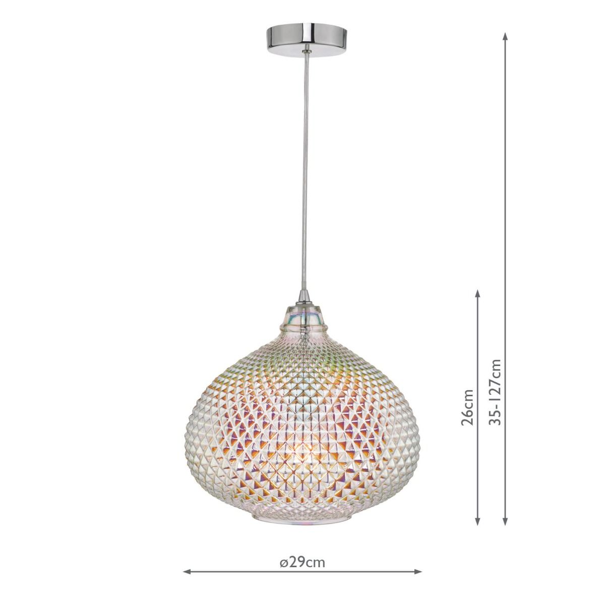 The eye-catching Roisin ceiling pendant features a wonderfully textured glass shade with an iridised, oil-effect finish.