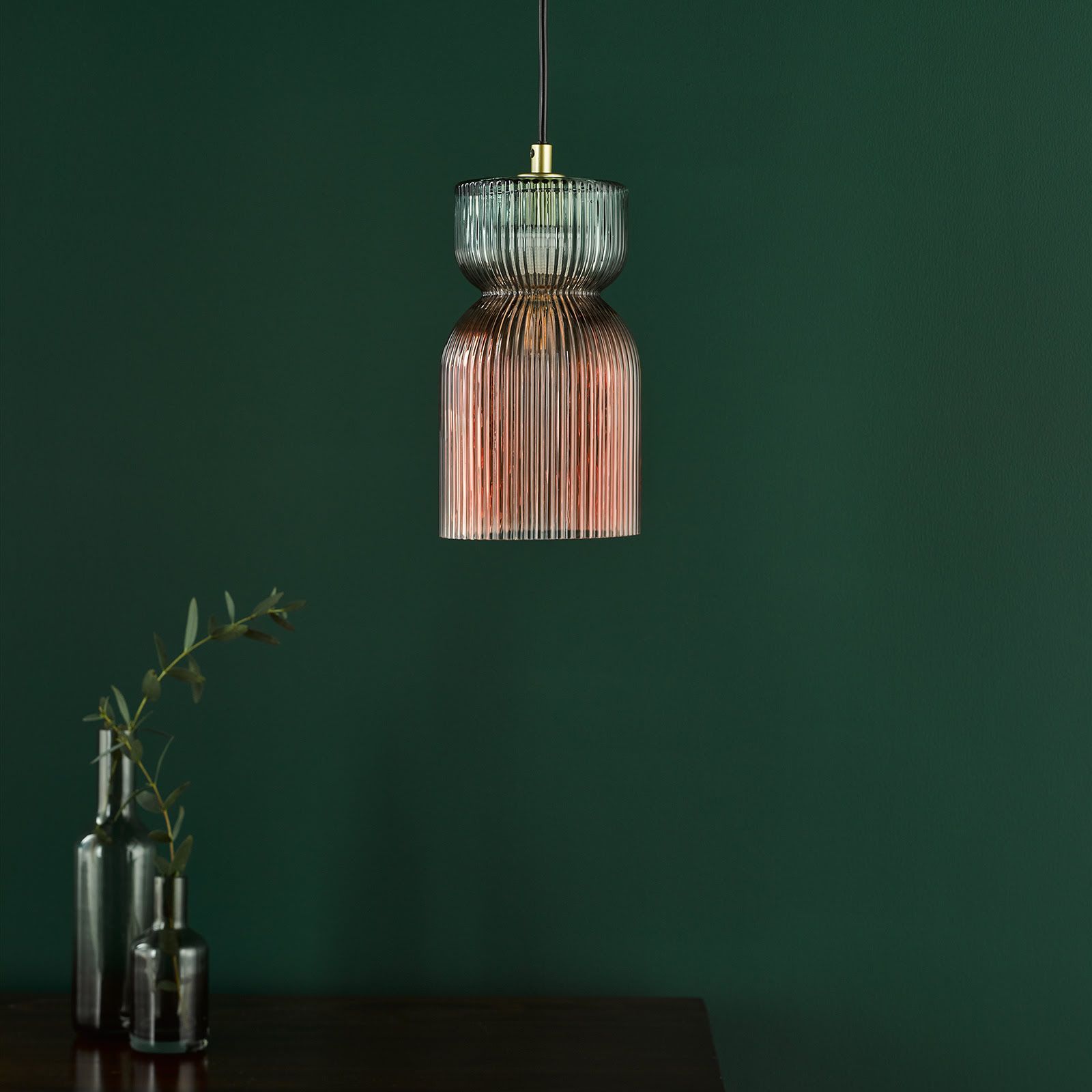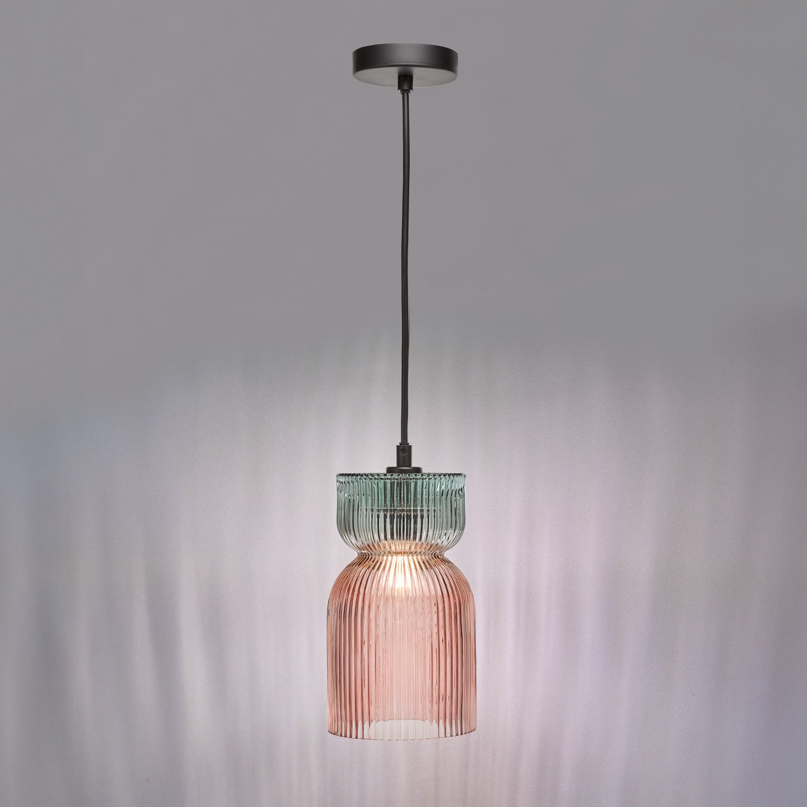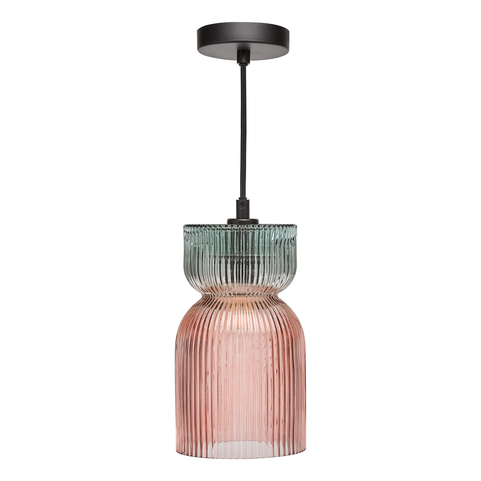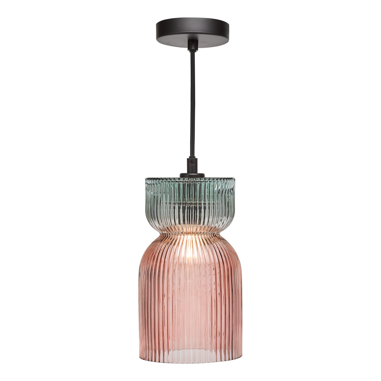 Rhubarb Pendant Pink and Green Ribbed Glass