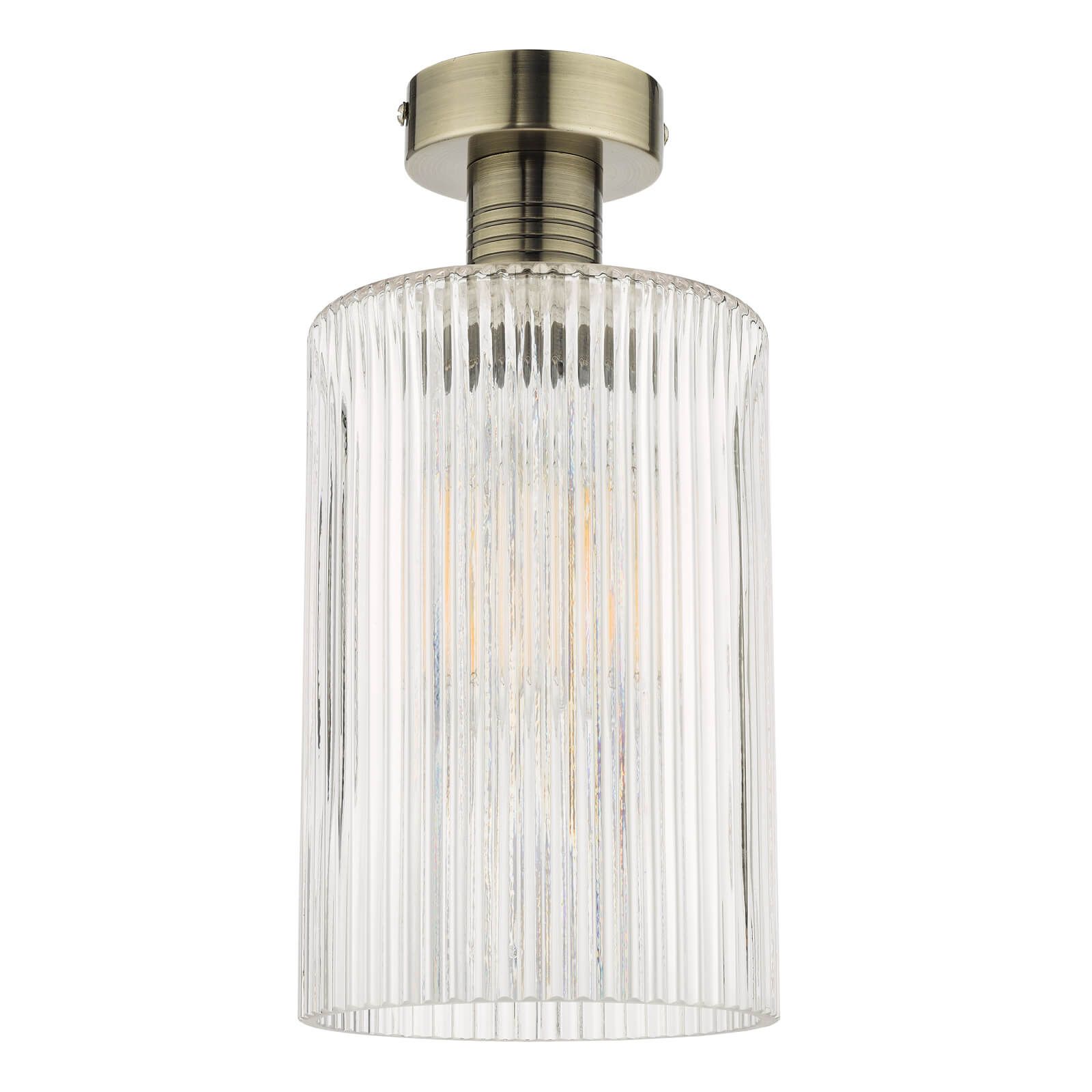Emerson Semi Flush Antique Brass Cylinder Ribbed Glass