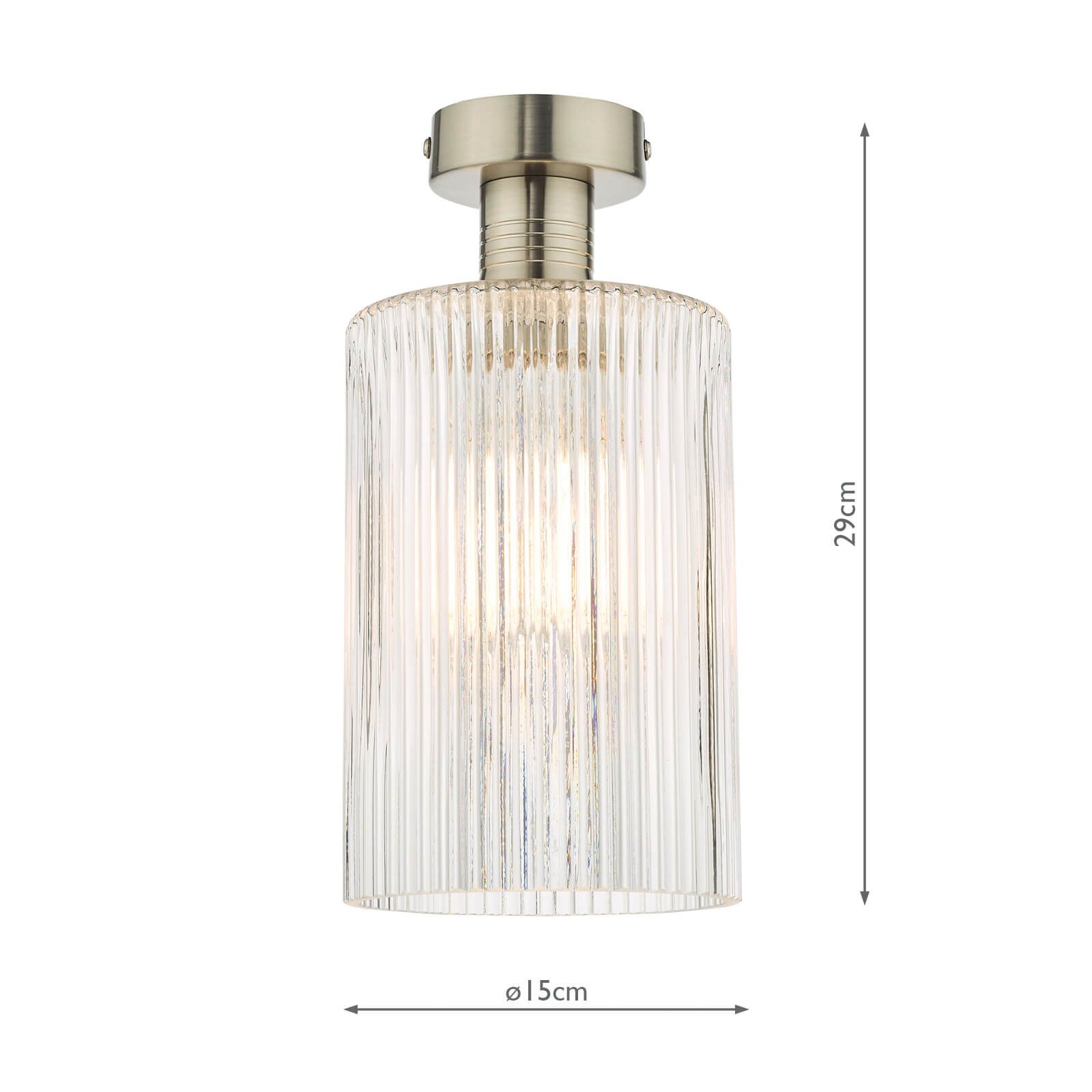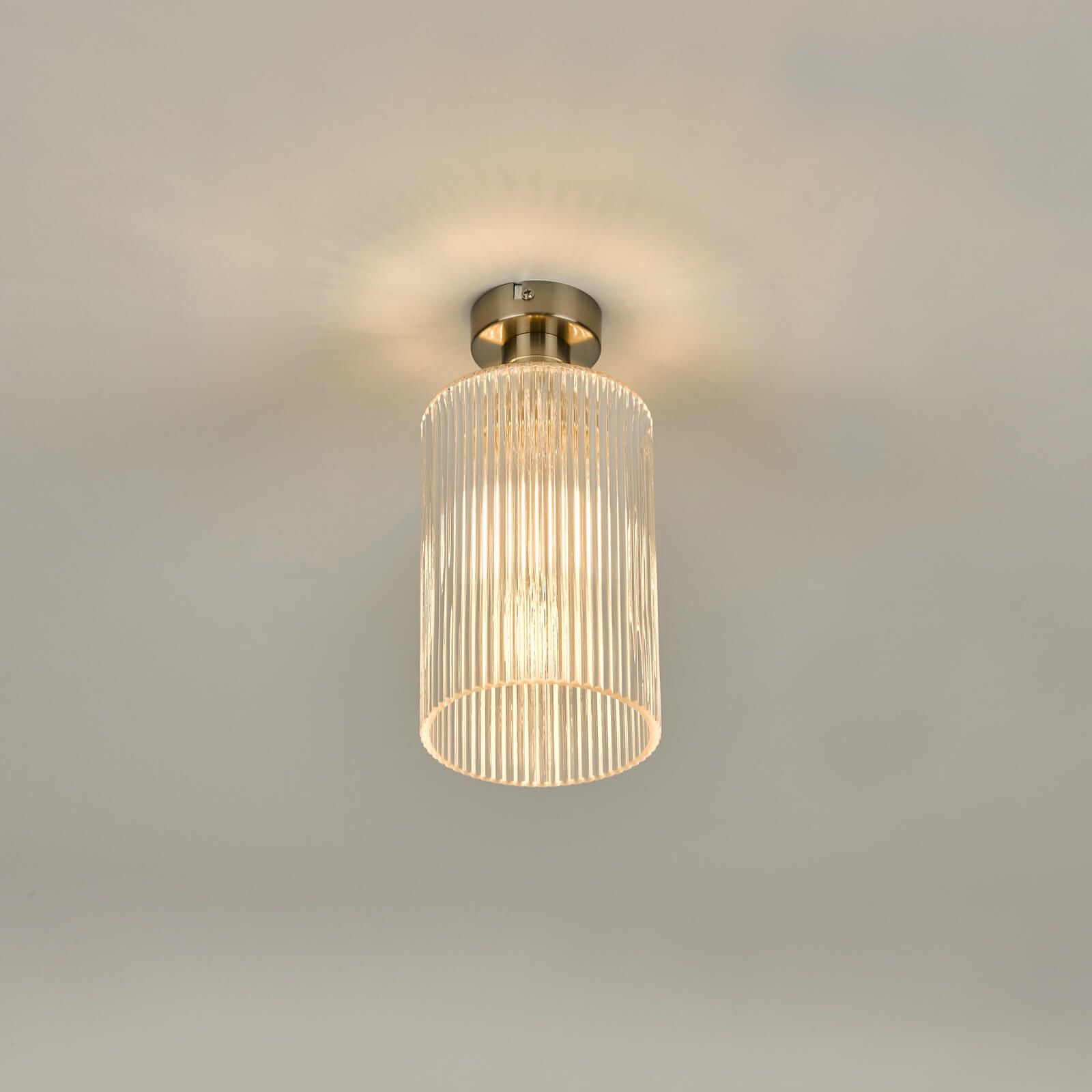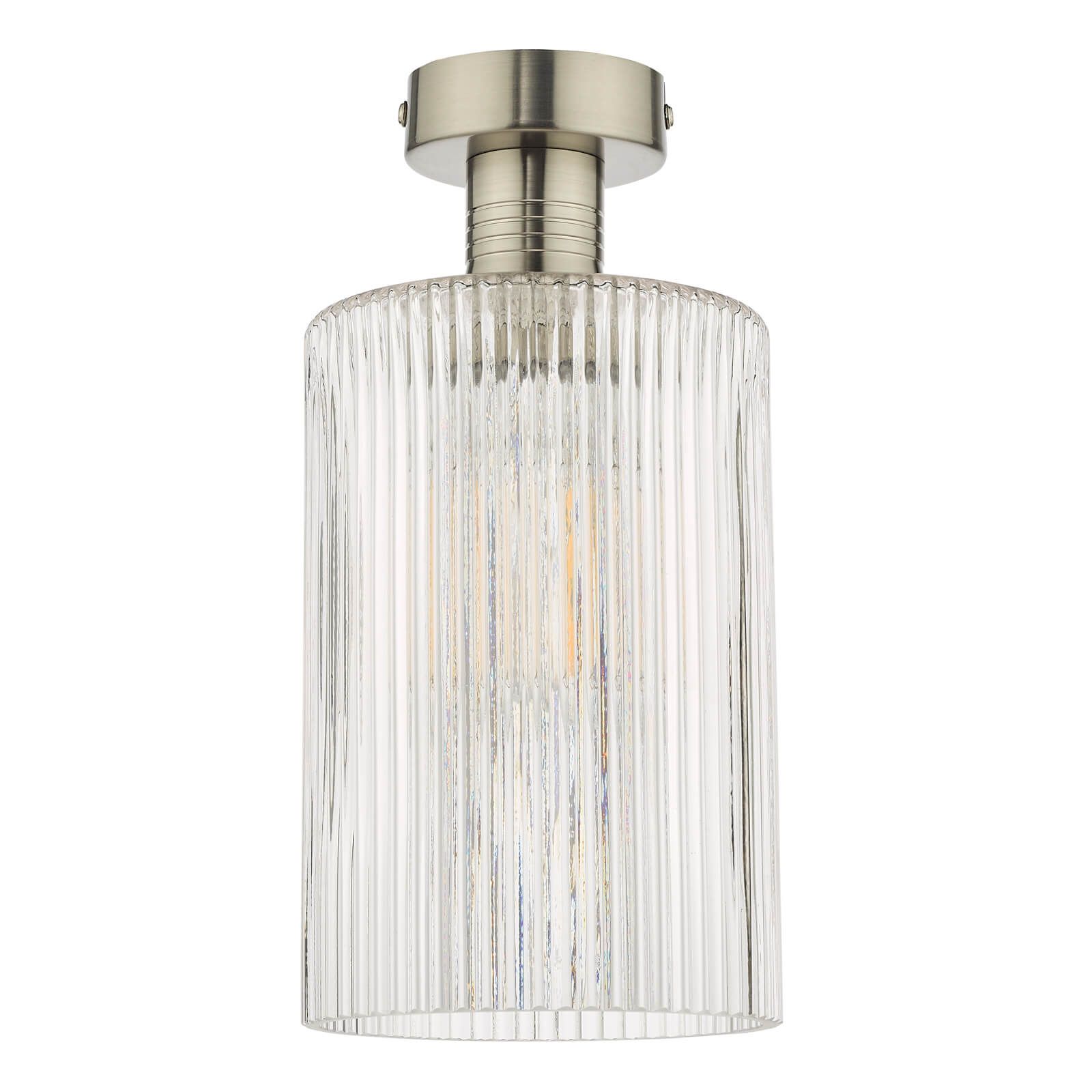 Emerson Semi Flush Antique Chrome Cylinder Ribbed Glass