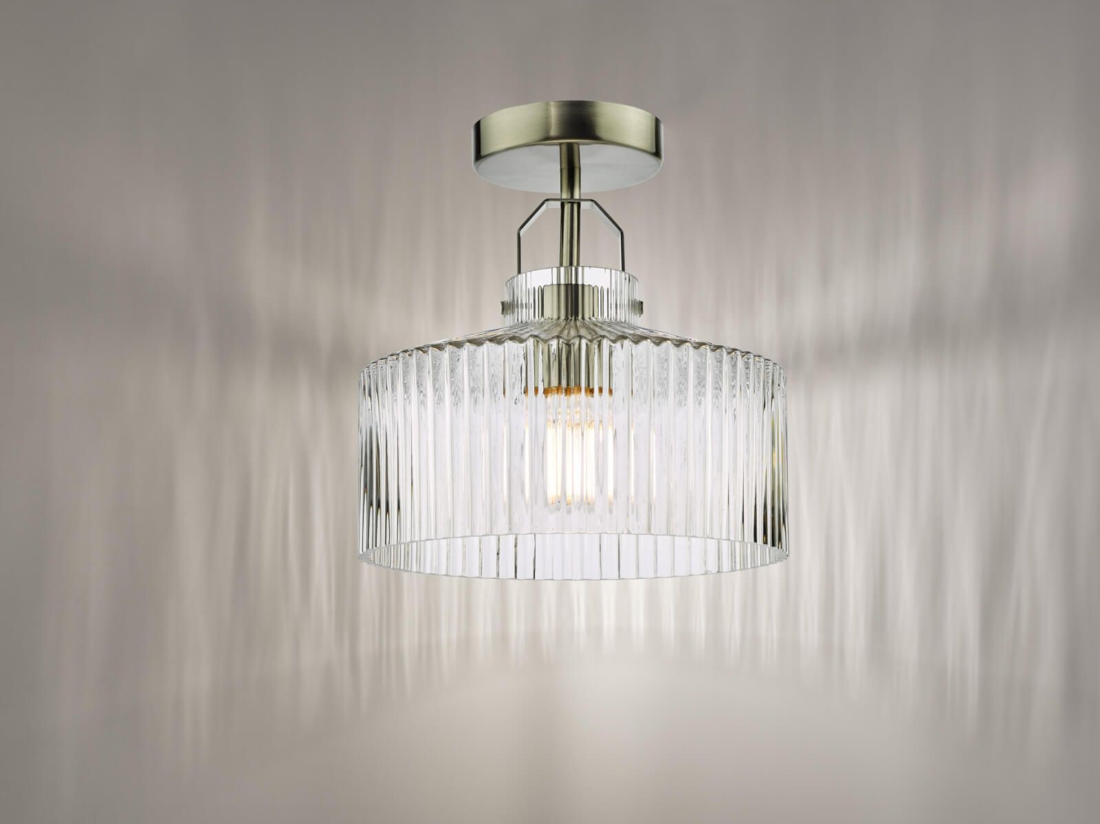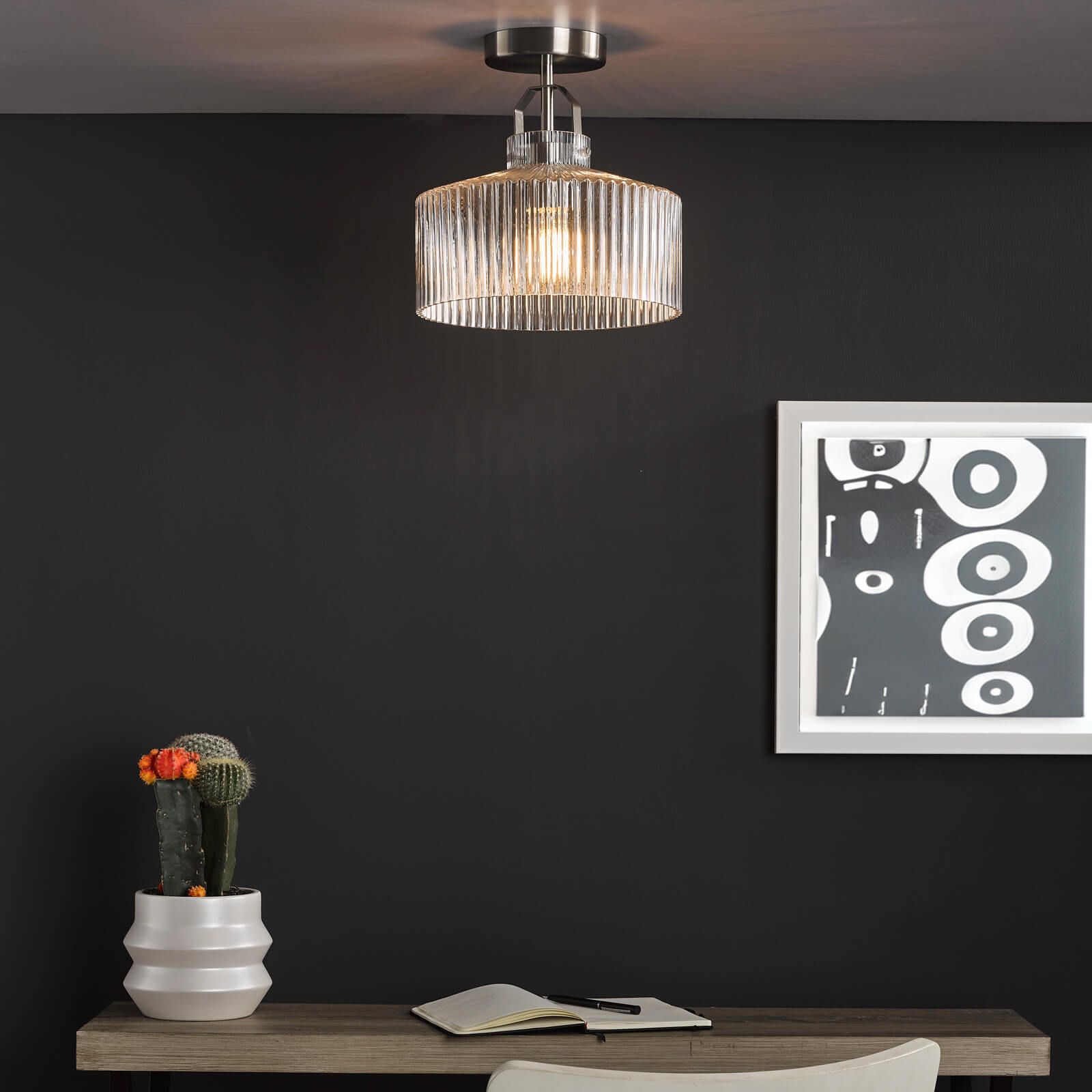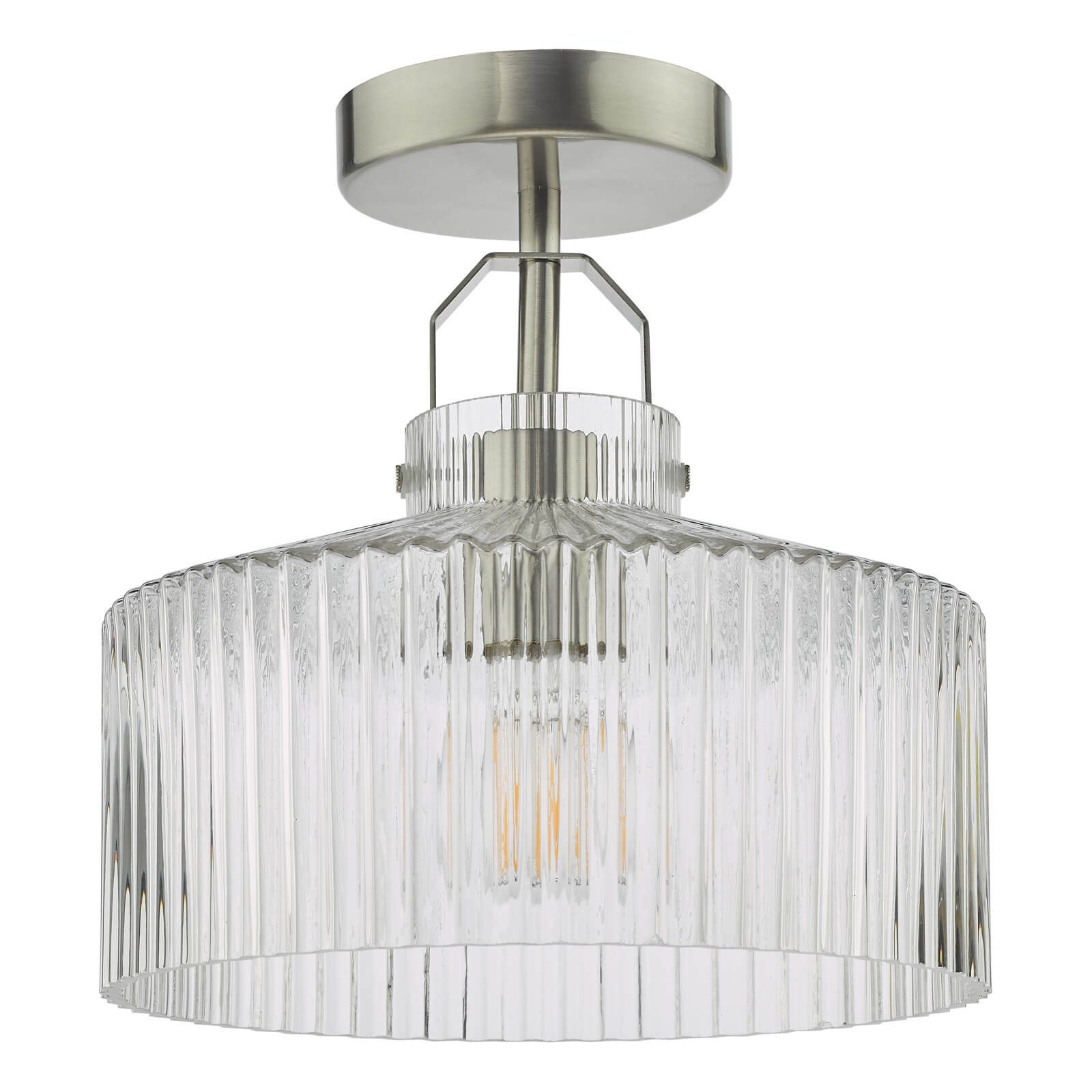 Lenka Semi-Flush Satin Nickel and Ribbed Glass
