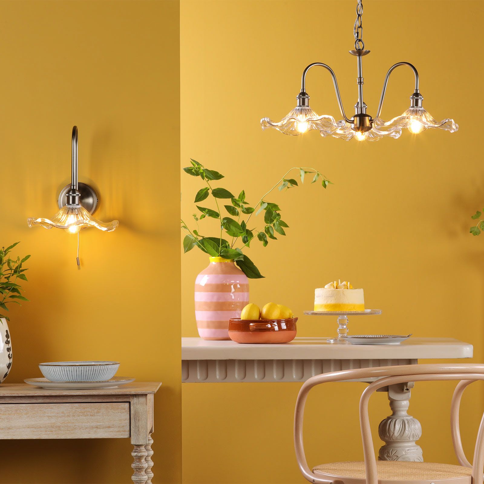 This Tall Wall Light Bracket from the Hadano range blends heritage style with modern versatility. Crafted from steel in an antique chrome finish with vintage detailing, it comes complete with an Easy Fit wavy glass shade that adds a decorative flourish and softly diffuses the light. A matching ball-and-chain pull cord switch provides character and convenience, and can be removed at installation if preferred. Its slender curved arm holds an E14 lampholder, creating an elegant, understated profile. Perfect for living rooms, dining areas, bedrooms, kitchens, halls, or stairwells, the Hadano Wall Light delivers timeless style and versatile functionality.