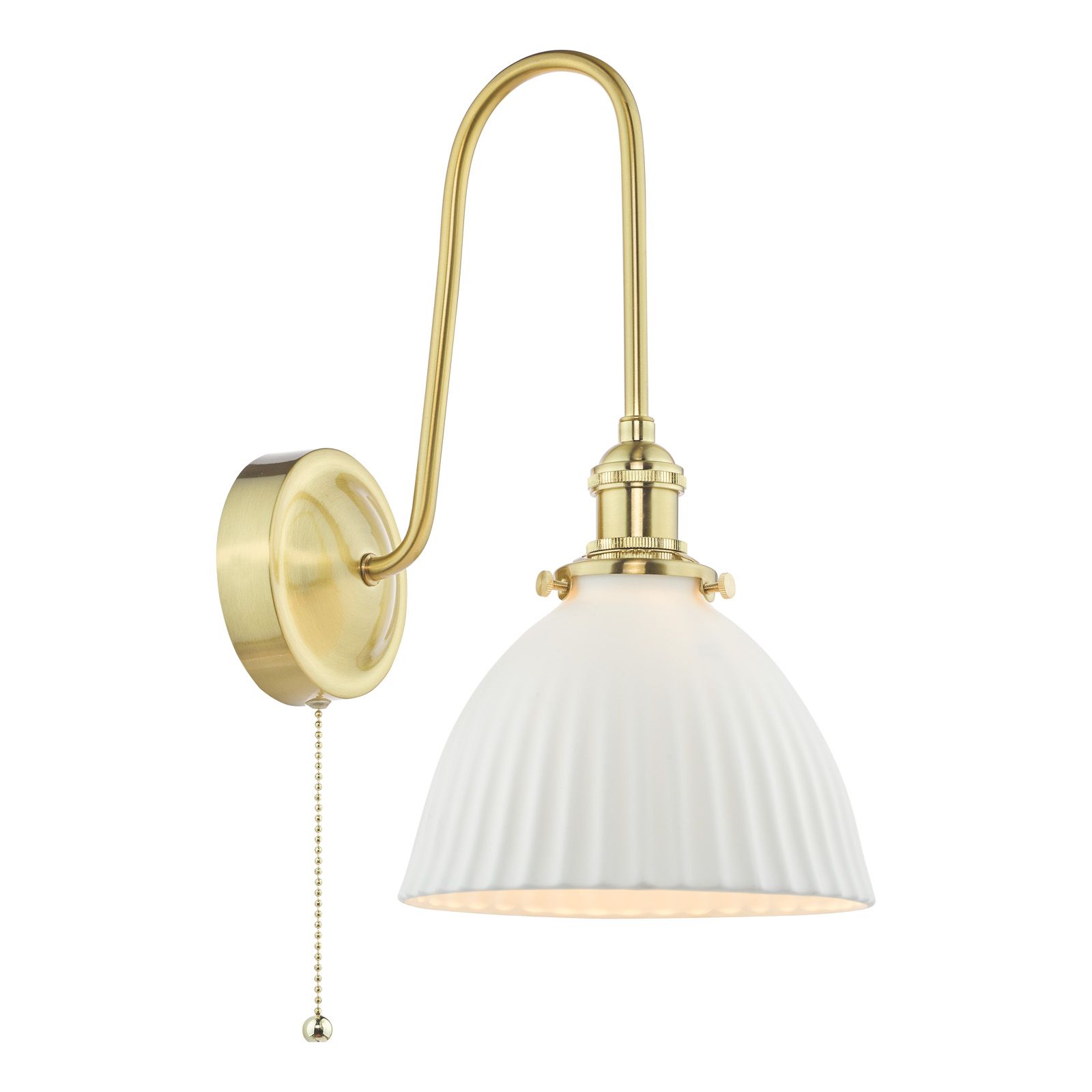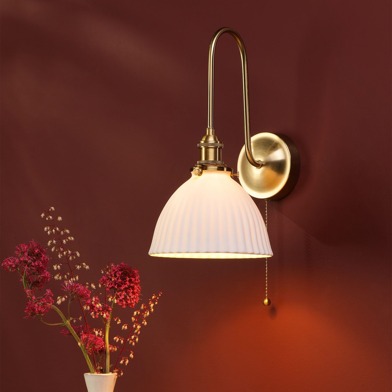 This Tall Wall Light Bracket from the Hadano range blends heritage style with modern versatility. Crafted from steel in a warm brass finish with vintage detailing, it comes complete with an Easy Fit white domed ceramic shade that enhances the design with crisp, timeless elegance. A matching ball-and-chain pull cord switch provides charm and convenience, and can be removed at installation if preferred. Its slender curved arm holds an E14 lampholder, creating an elegant, understated profile. Perfect for living rooms, dining areas, bedrooms, kitchens, halls, or stairwells, the Hadano Wall Light delivers enduring style and versatile functionality.