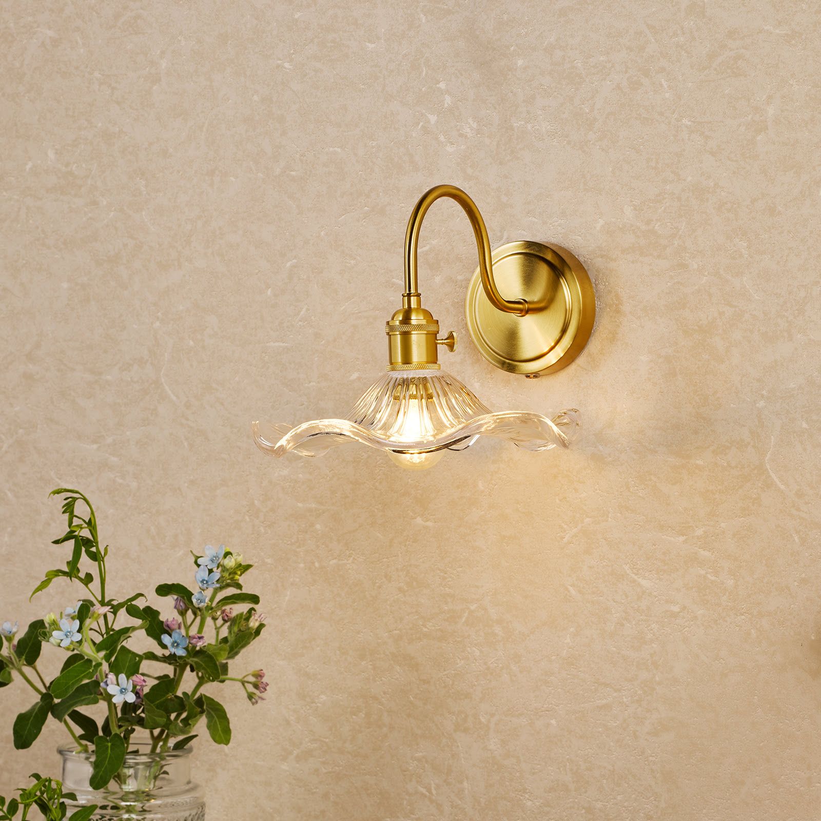 Hadano Wall Light Natural Brass and Wavy Glass