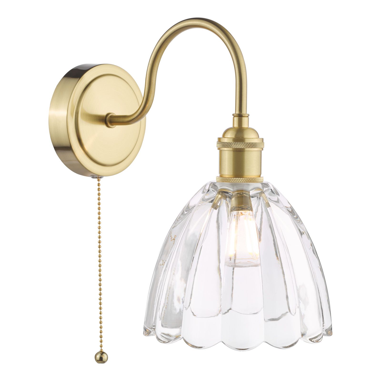 Illuminate your space with a touch of timeless elegance using the Hadano brass and glass wall light from dar lighting. This stunning Wall Light combines the warmth of natural brass with intricately ribbed scalloped glass, creating a captivating play of light and shadow. Part of the extensive Hadano range, this fixture offers versatility for any room, from cosy bedrooms to stylish living areas. The pull chain switch adds a classic touch, but can be easily removed for a sleeker look. Whether you're after a vintage vibe or a modern twist, this dar lighting masterpiece effortlessly bridges the gap between traditional charm and contemporary chic. Transform your walls into radiant focal points with this exquisite brass and glass wall light.