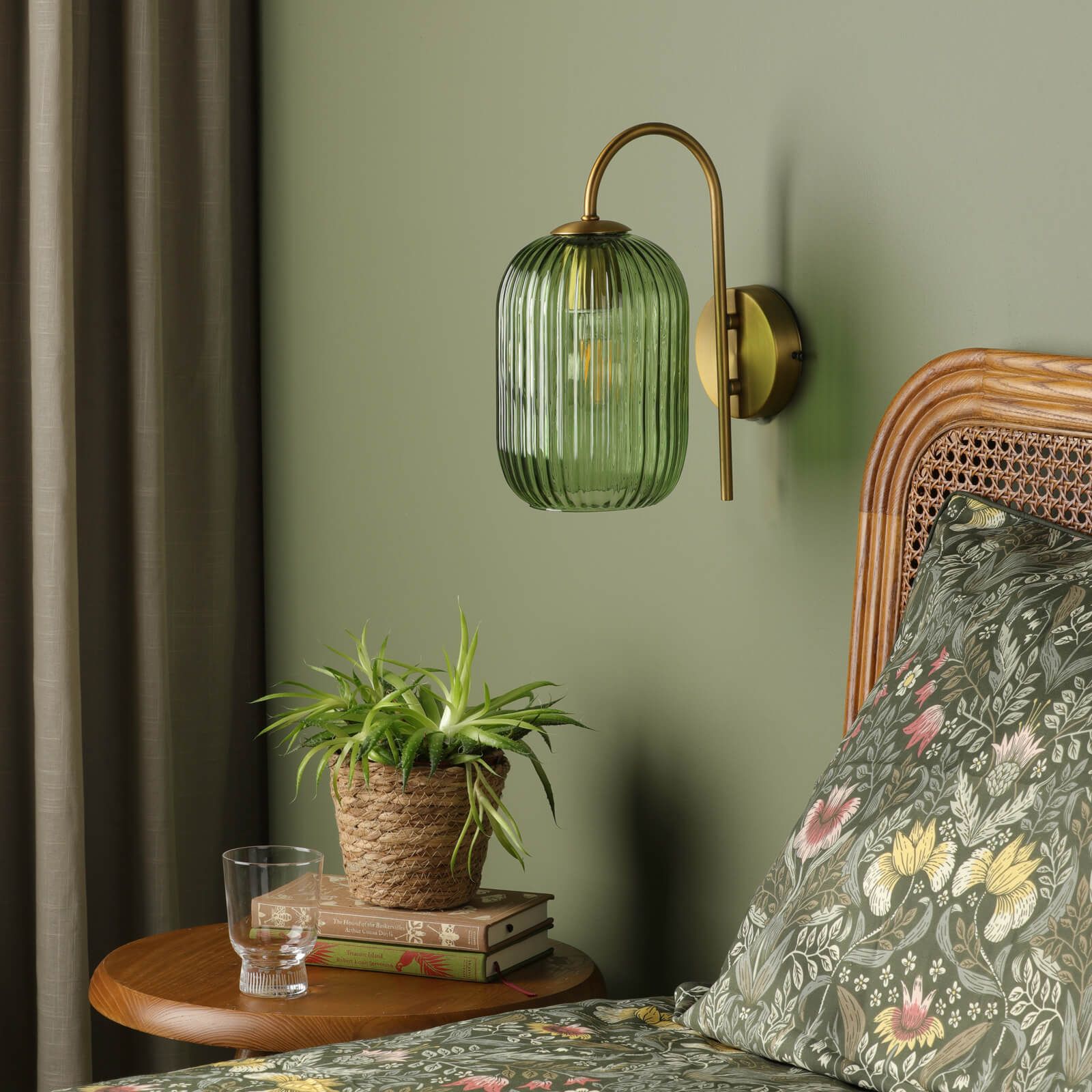 Idra Wall Light Aged Bronze and Green Ribbed Glass