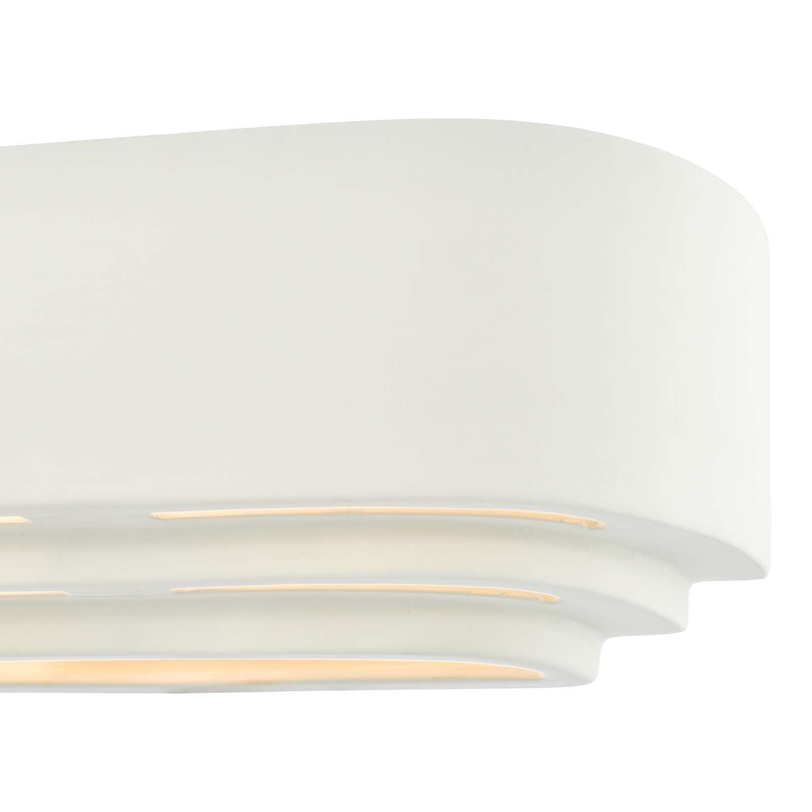 The Lando Ceramic Wall Washer is a beautifully hand-cast fixture featuring an art deco-inspired stepped shape, showcasing intricate craftsmanship. Its unique design includes openings at the top, bottom, and between the steps, allowing light to be cast both upward and downward, creating a stunning ambient glow that enhances your space. The unglazed finish offers versatility, as it can be easily painted to complement your surrounding décor, making it a perfect fit for various interior styles. Ideal for living rooms, hallways, or entryways, the Lando wall washer not only illuminates but also adds a touch of elegance to your home.
