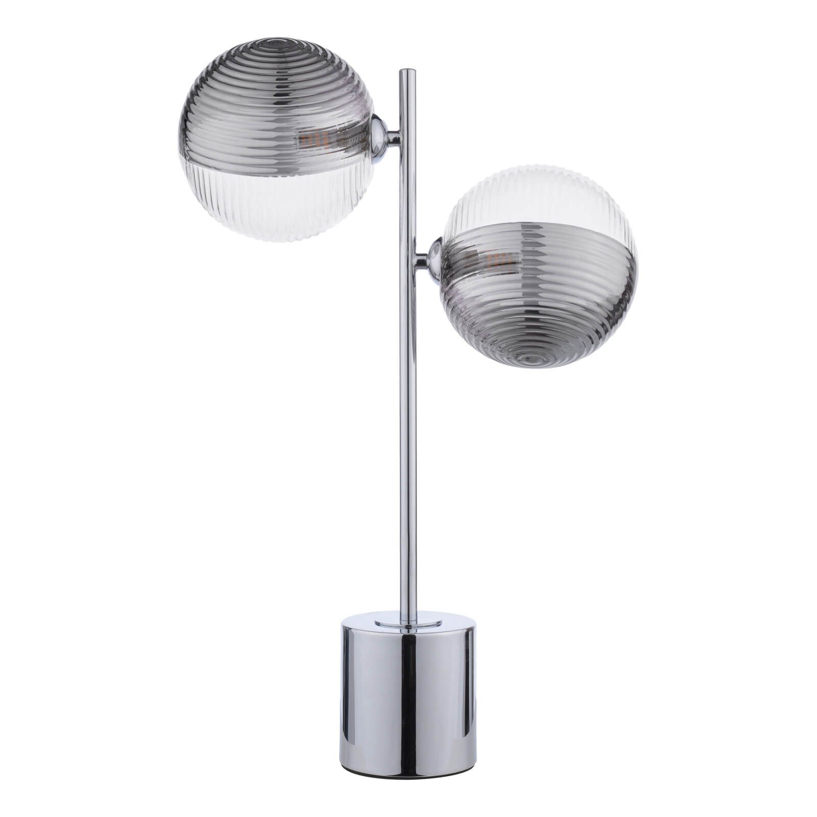 Spiral 2 Light Table Lamp Polished Chrome With Smoked/Clear Ribbed Glass