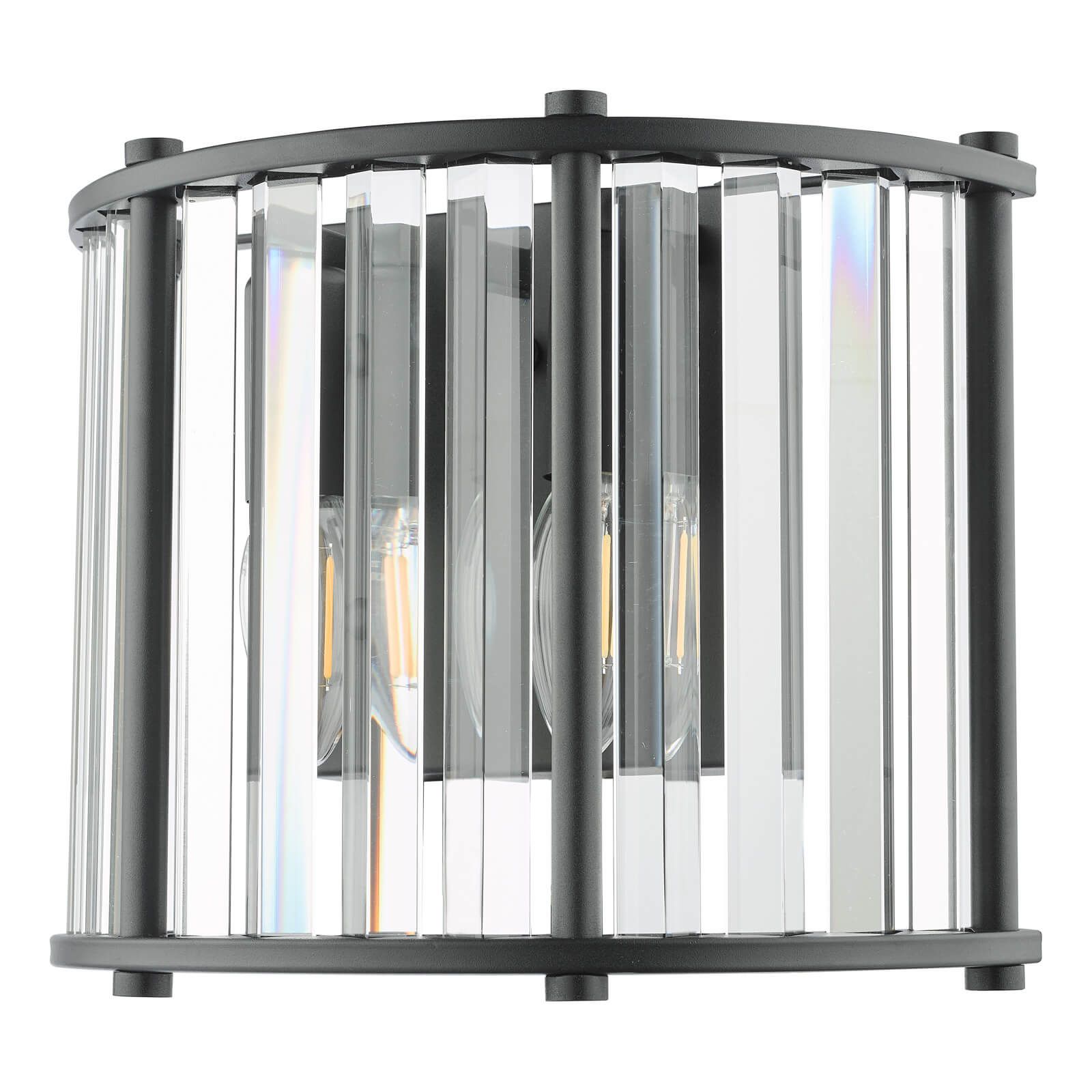 Kiran 2 Light Wall Light Satin Black and Crystal