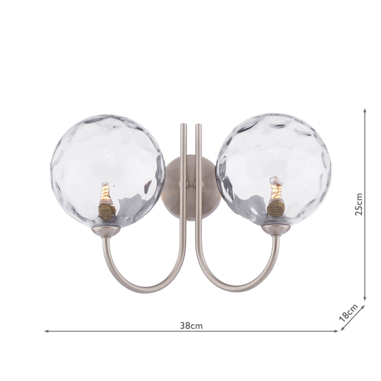 Jared 2 Light Wall Light Satin Nickel With Clear Dimpled Glass