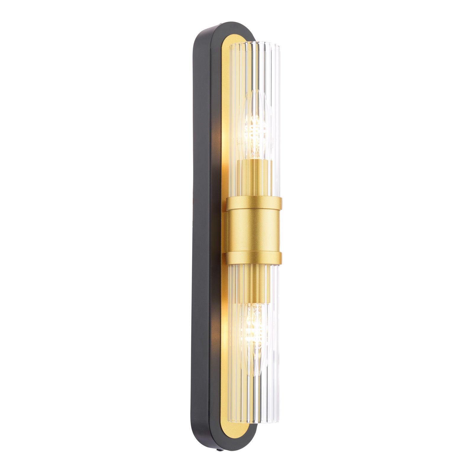 Rhian 2 Light Wall Light Matt Black and Ribbed Glass