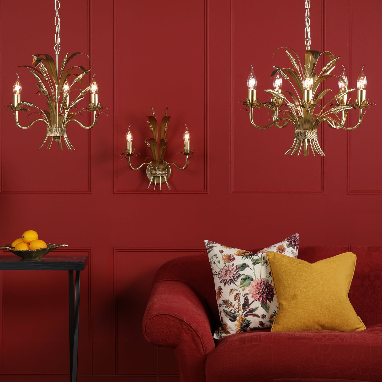 Bring a touch of Italian elegance to your home with the Phaedra 2 Light Wall Light from Dar Lighting. This stunning gold wall light features hand-applied wheatsheafs and leaves, drawing inspiration from classic Italian toile lighting. The painted gold effect finish adds a luxurious sheen, making it a captivating focal point in any room. Whether gracing your living room, bedroom, or hallway, this wall light effortlessly combines form and function. As part of a complete collection, you can create a cohesive look throughout your space. Let the Phaedra light transform your walls into a canvas of warmth and sophistication, bringing a slice of Italian charm to your everyday life.
