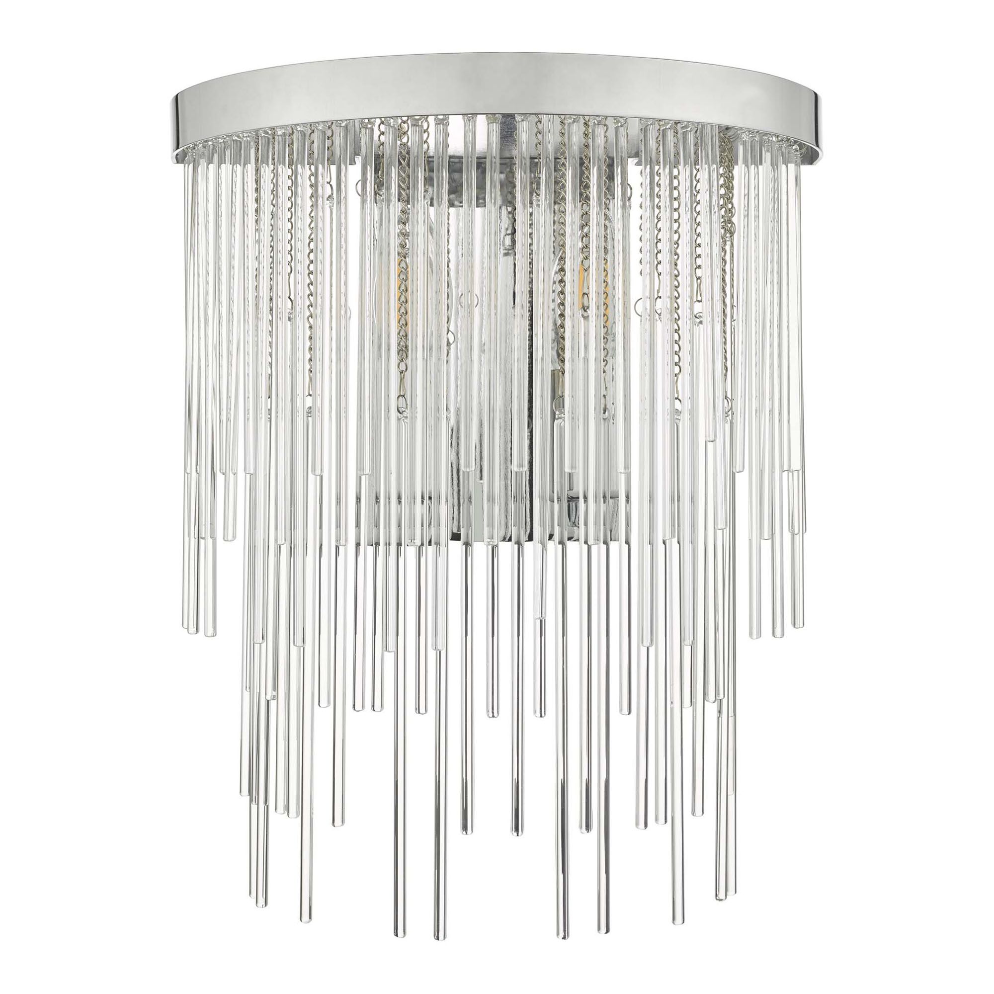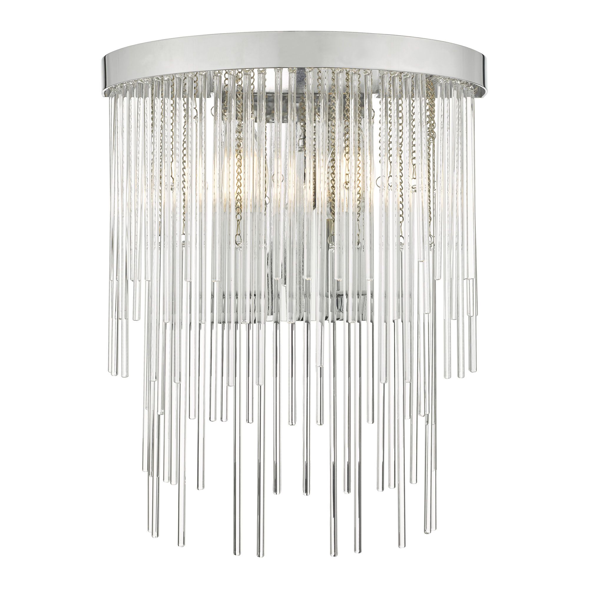 The Isla 2 Light Wall Light ISL0950 is a decorative wall light in a polished chrome finish with hundreds of dangling clear glass rods designed to look captivating as it casts its spectacular light. Matching 7 light pendant available.
