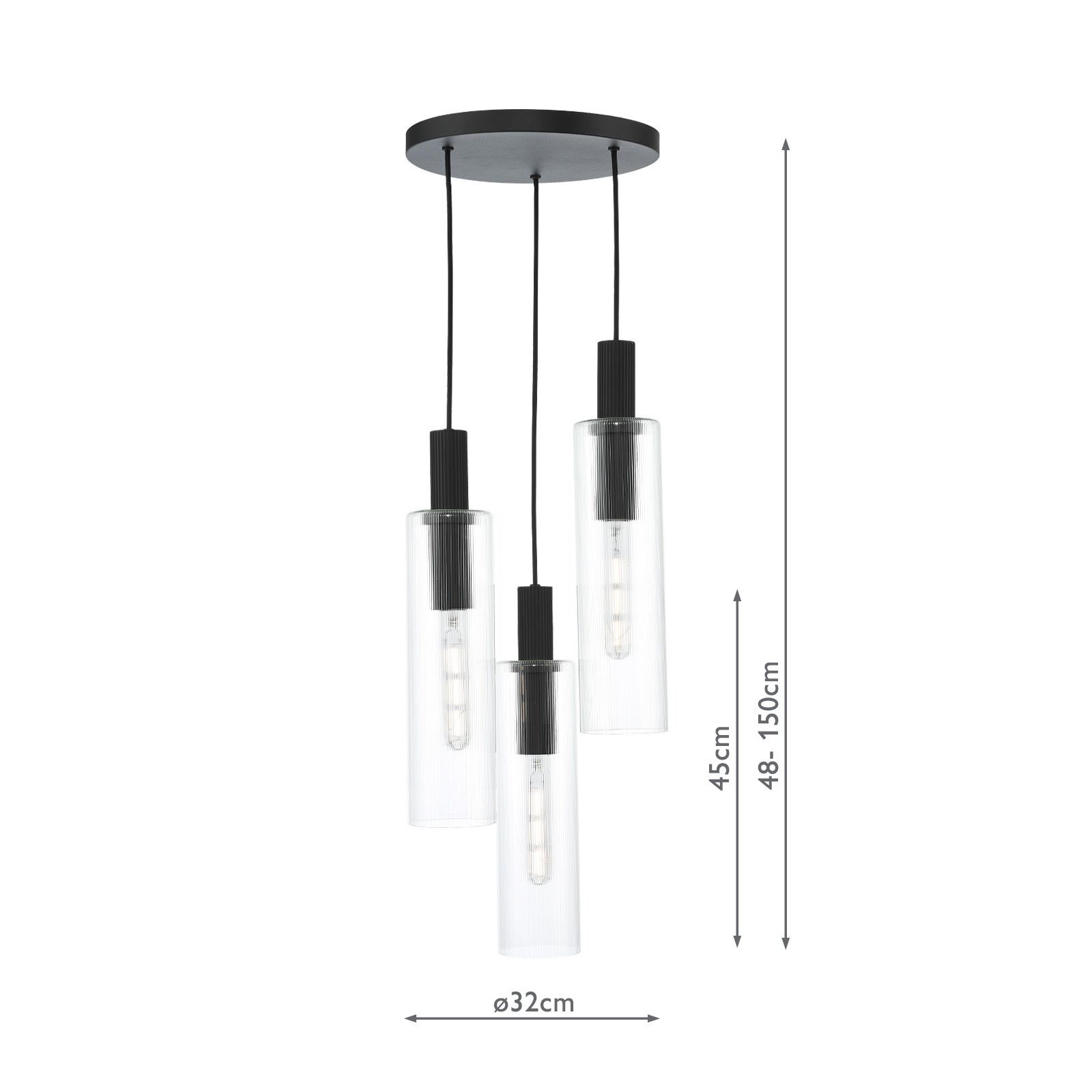 Ruben 3 Light Cluster Pendant Satin Black and Ribbed Glass