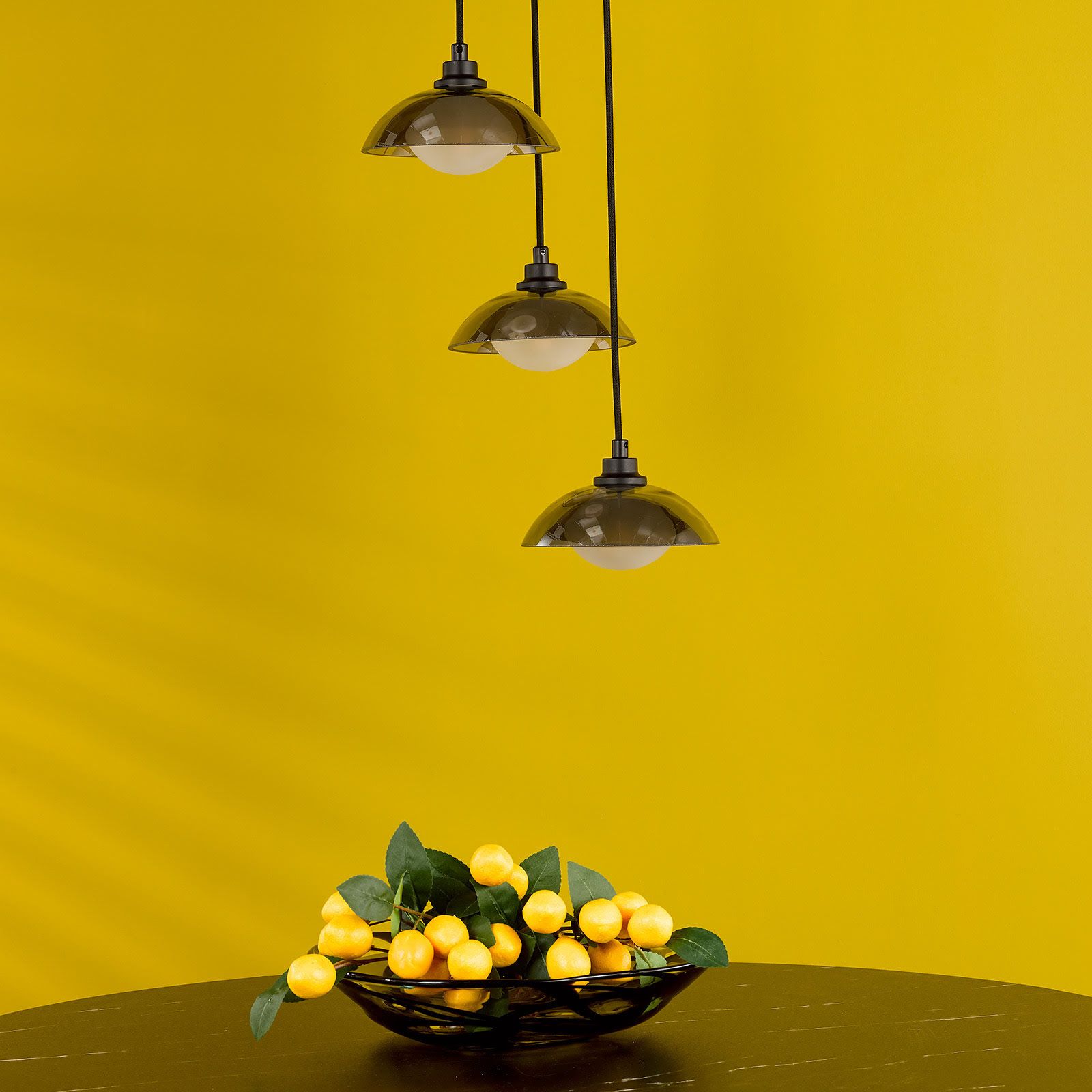 Kadience 3 Light Cluster Pendant Satin Black and Smoked Glass
