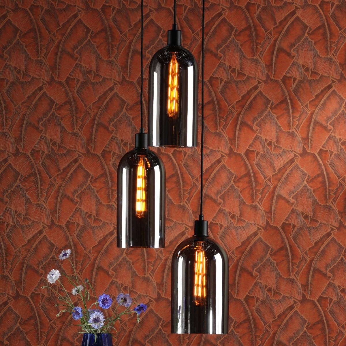 3 Light Matt Black E27 Suspension Cluster