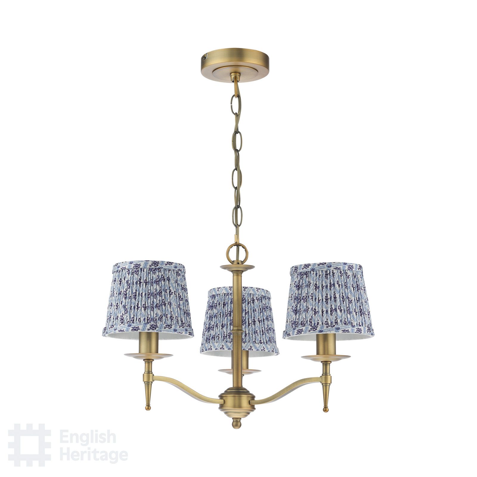 Marble Hill 3 Light Armed Pendant Aged Brass and Blue With Shade