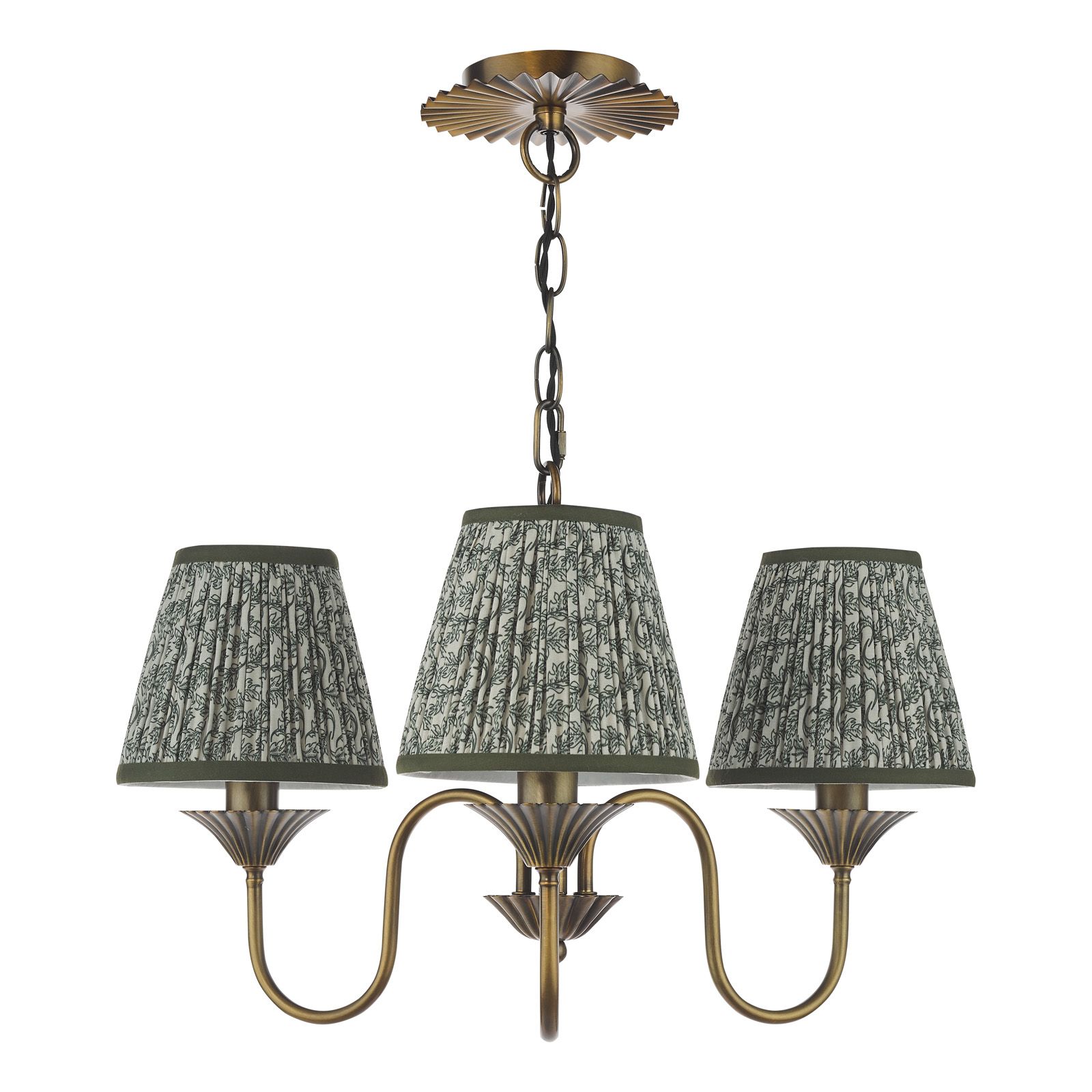 The Lydian 3 Light Pendant blends traditional charm with farmhouse character and modern versatility. Crafted in warm antique bronze, it comes complete with green cotton shades that bring a fresh accent and softly diffuse the light. Perfect for living rooms, dining areas, bedrooms, halls, or stairwells, the Lydian adapts beautifully from bright functional light to relaxed ambience, making it both practical and full of personality.