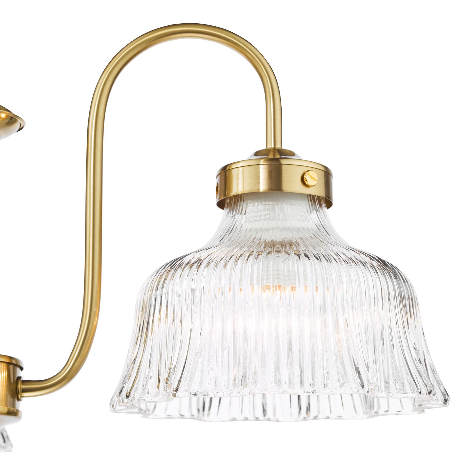 Maude 3 Light Armed Pendant Natural Brass and Ribbed Glass