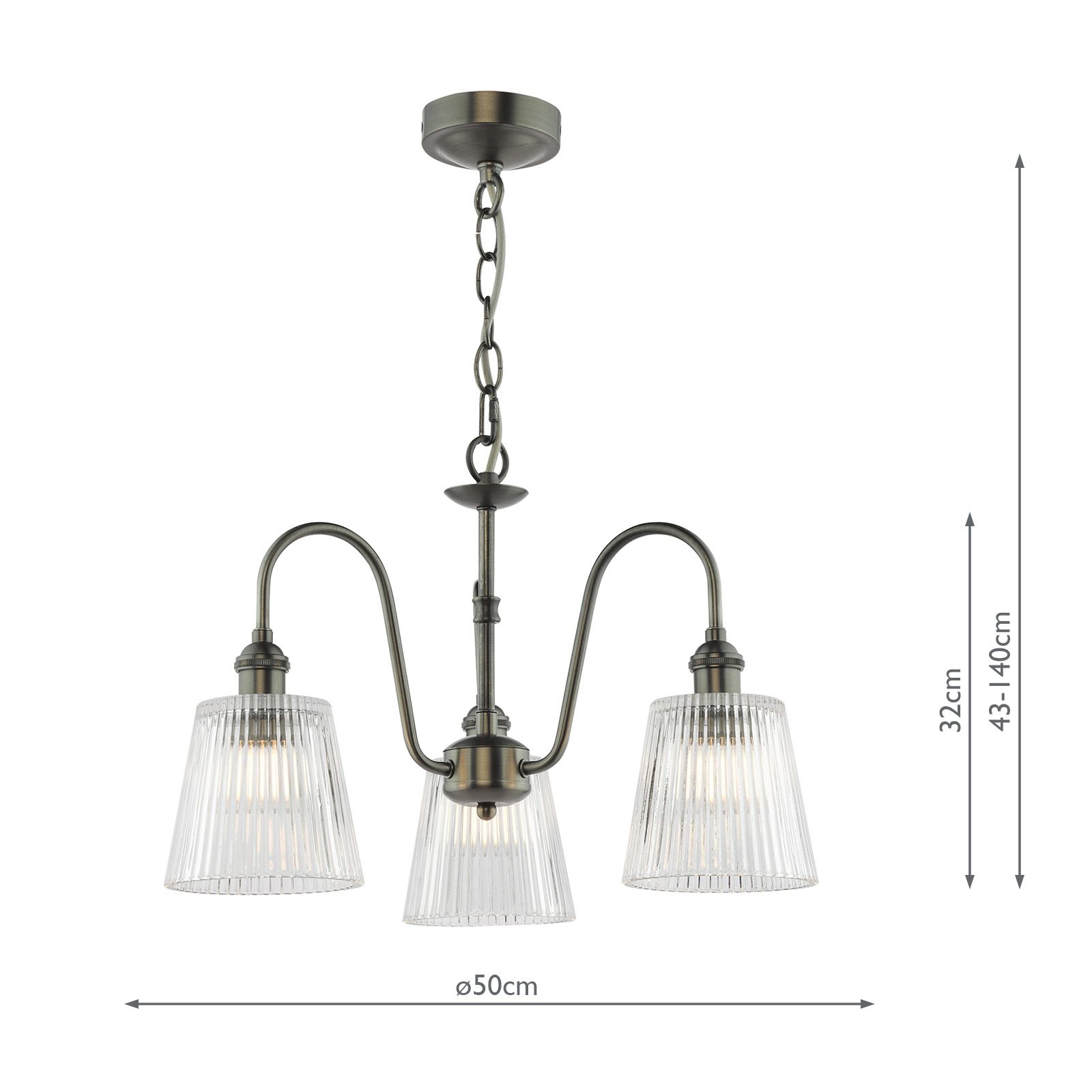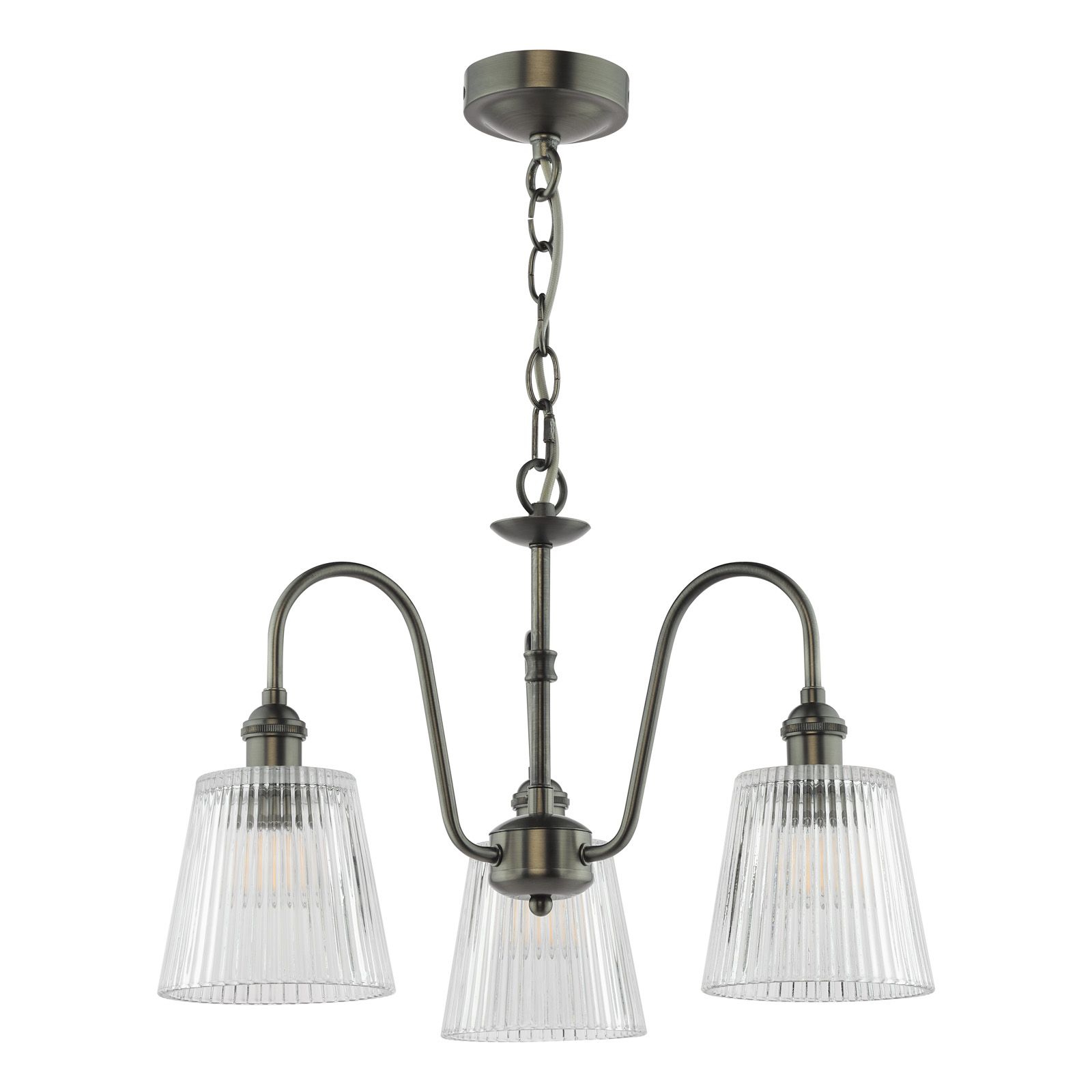 Hadano 3 Light Pendant Antique Chrome and Ribbed Glass