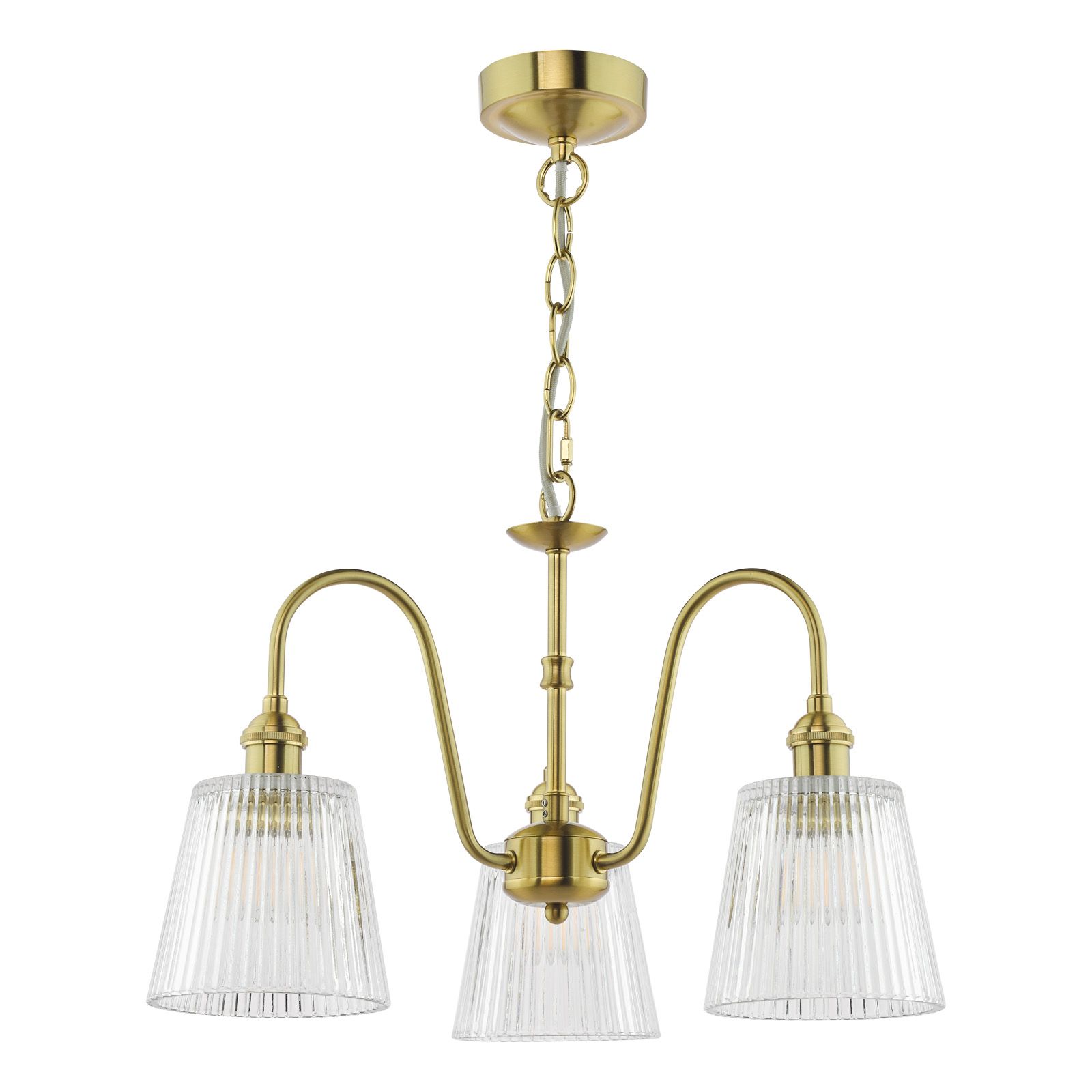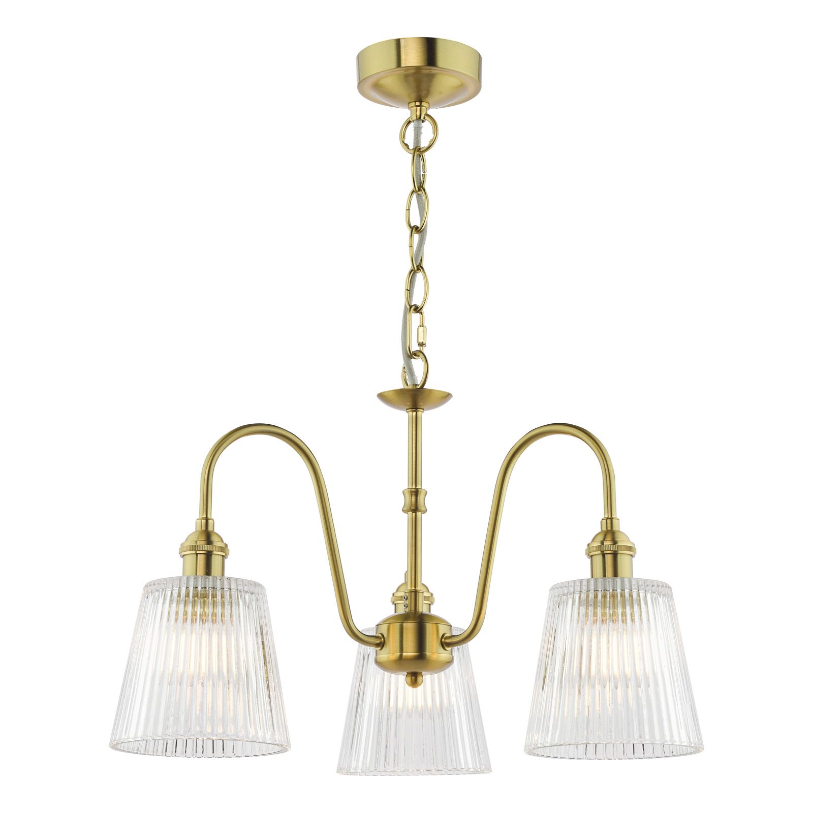 Hadano 3 Light Pendant Natural Brass and Ribbed Glass