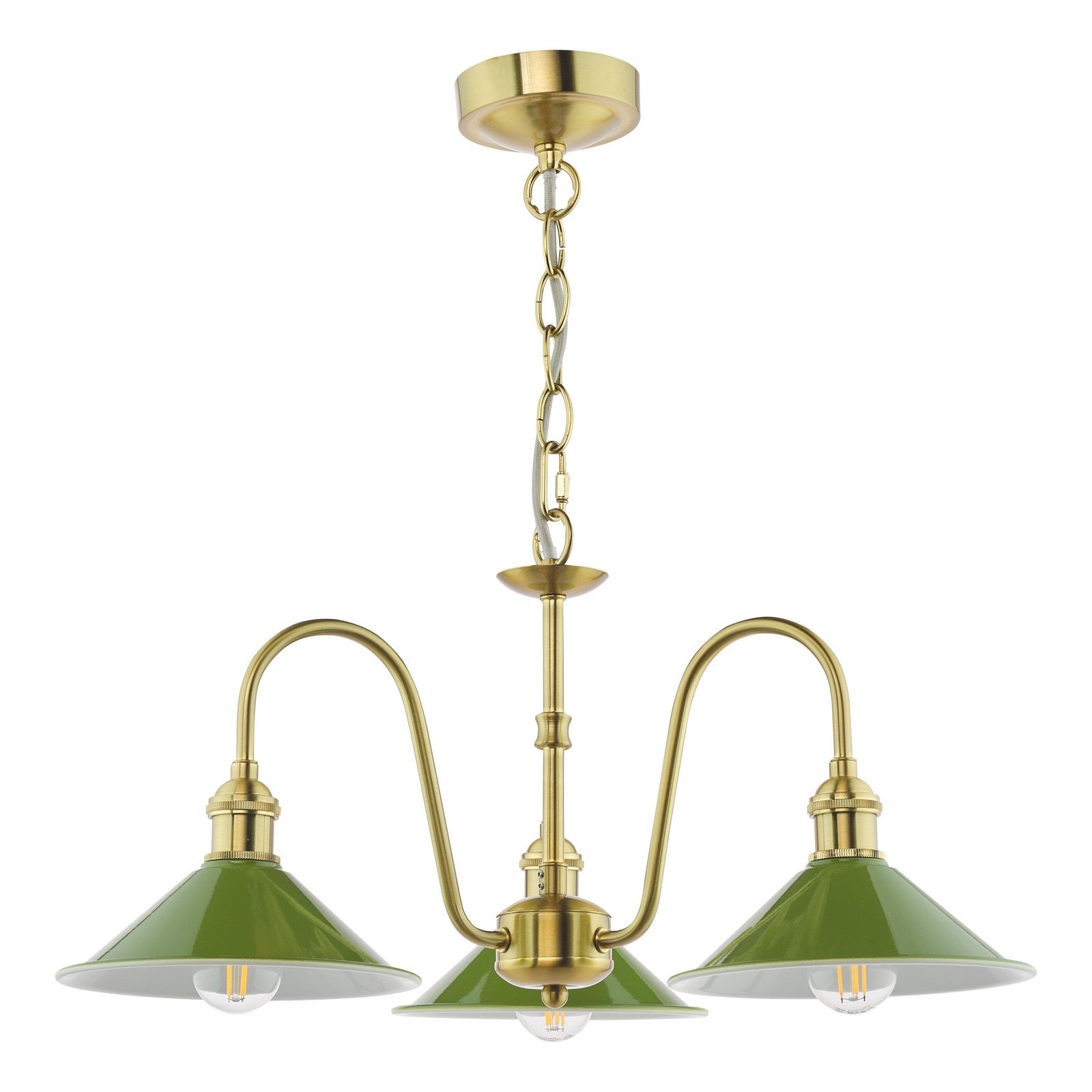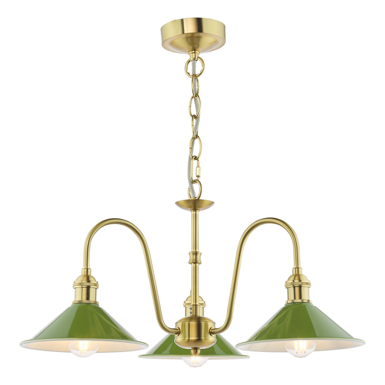 Hadano 3 Light Pendant Natural Brass and Matt Green