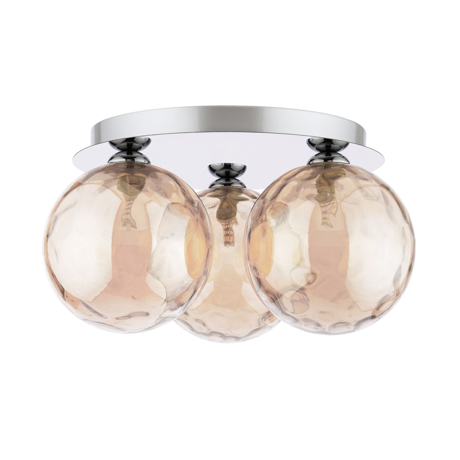 Foley 3 Light Flush Polished Chrome With Amber Dimpled Glass