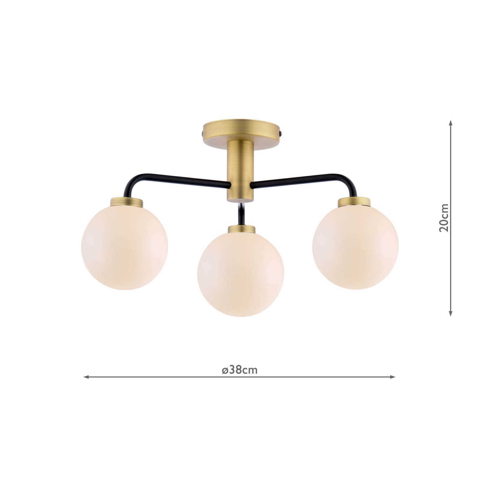 Lainey 3 Light Semi-Flush Matt Black and Antique Brass With Opal Glass