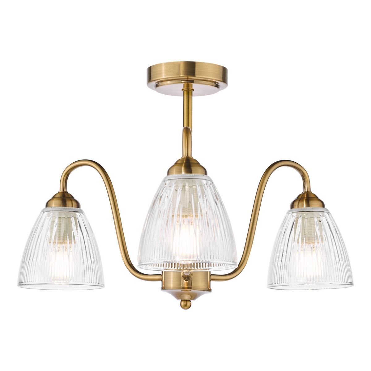 Glynis 3 Light Semi-Flush Antique Bronze and Ribbed Glass