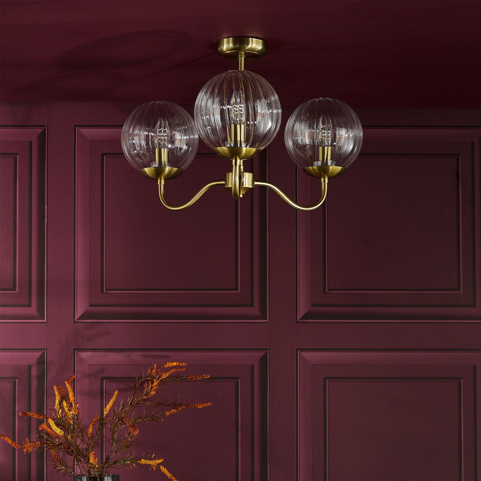Jocelyn 3 Light Semi-Flush Natural Brass and Glass