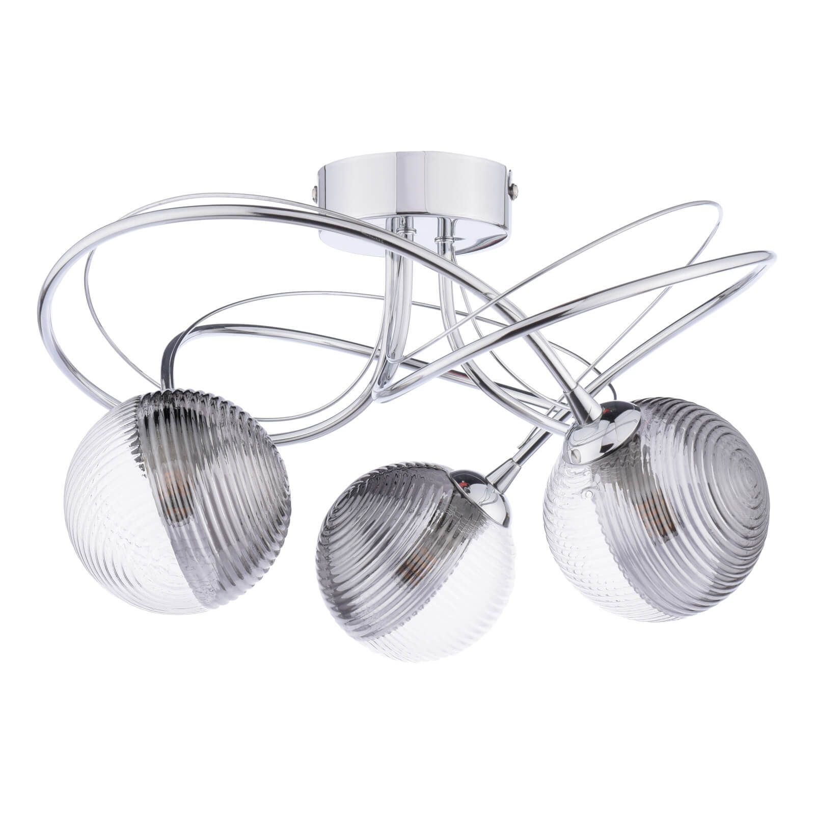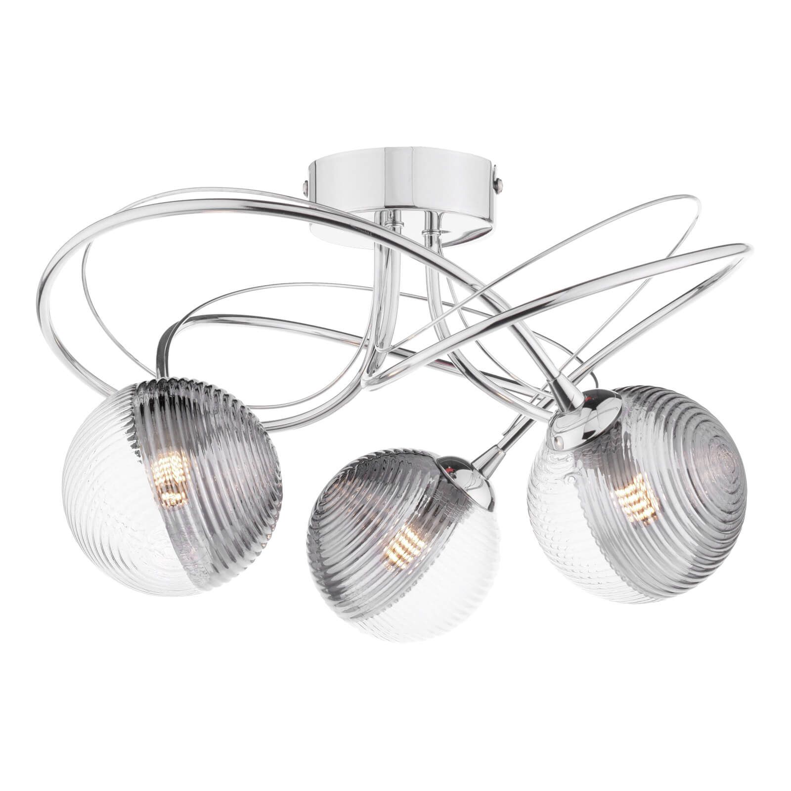 Onawa 3 Light Semi Flush Polished Chrome With Smoked/Clear Ribbed Glass