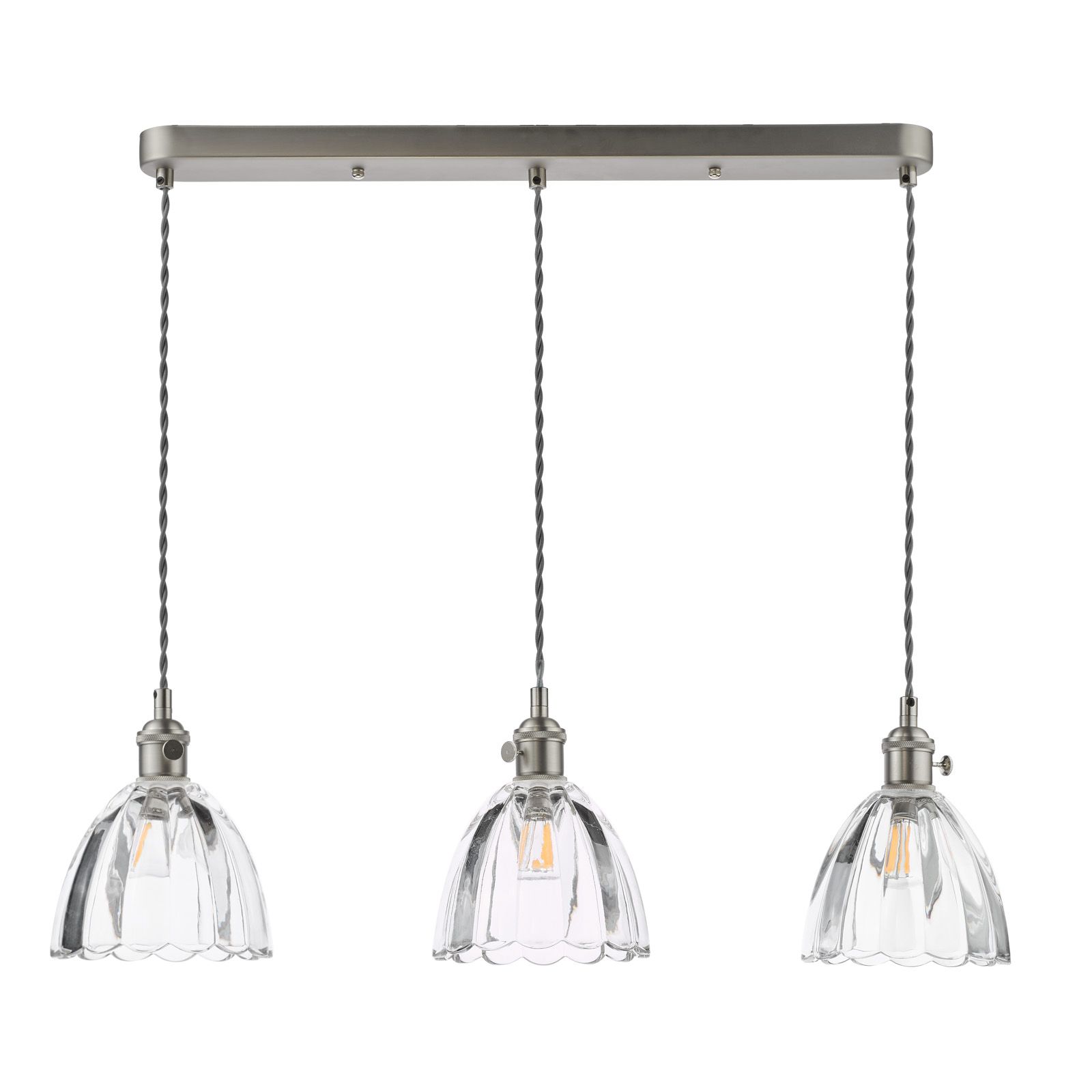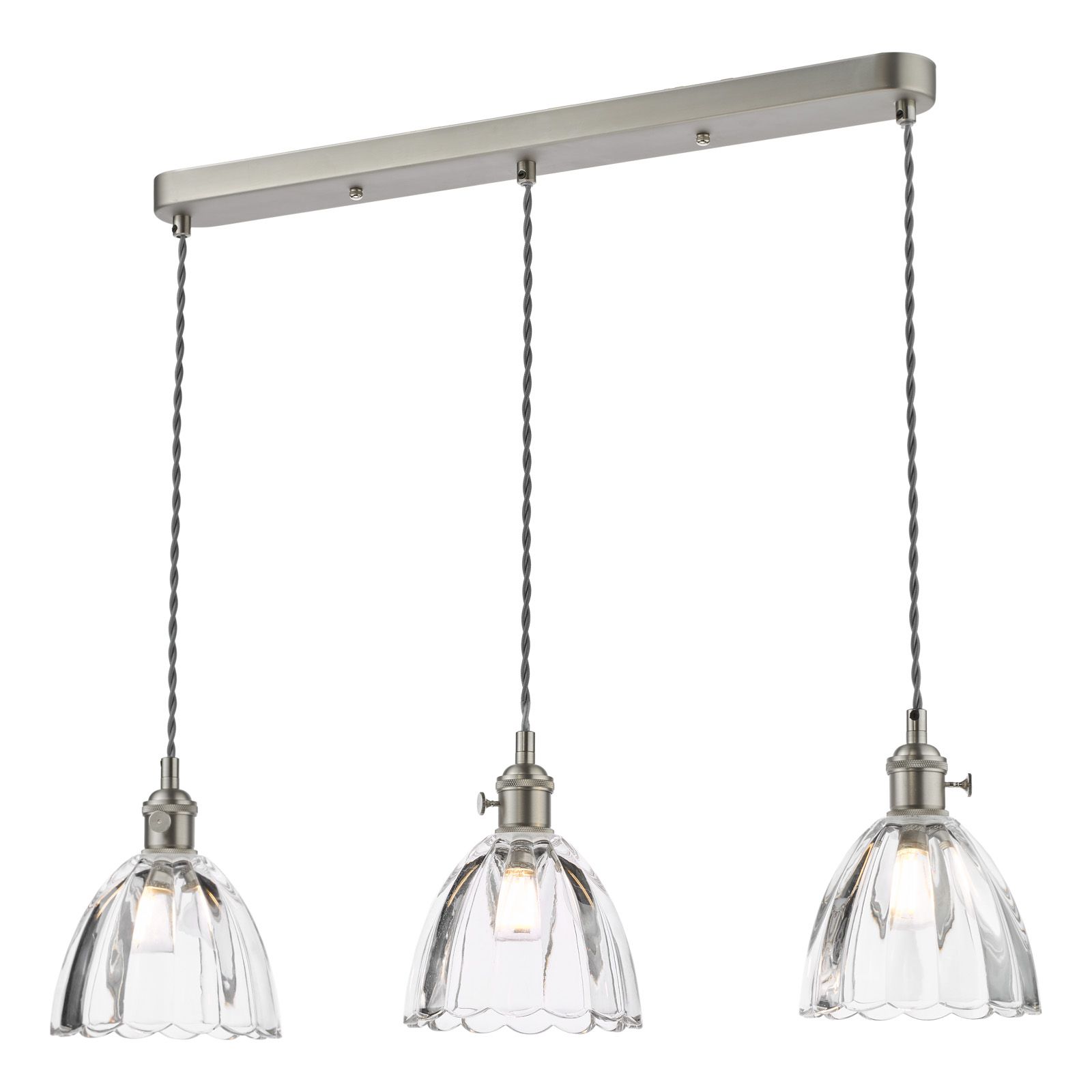 Hadano 3 Light Bar Pendant Antique Chrome and Scalloped Bell Glass