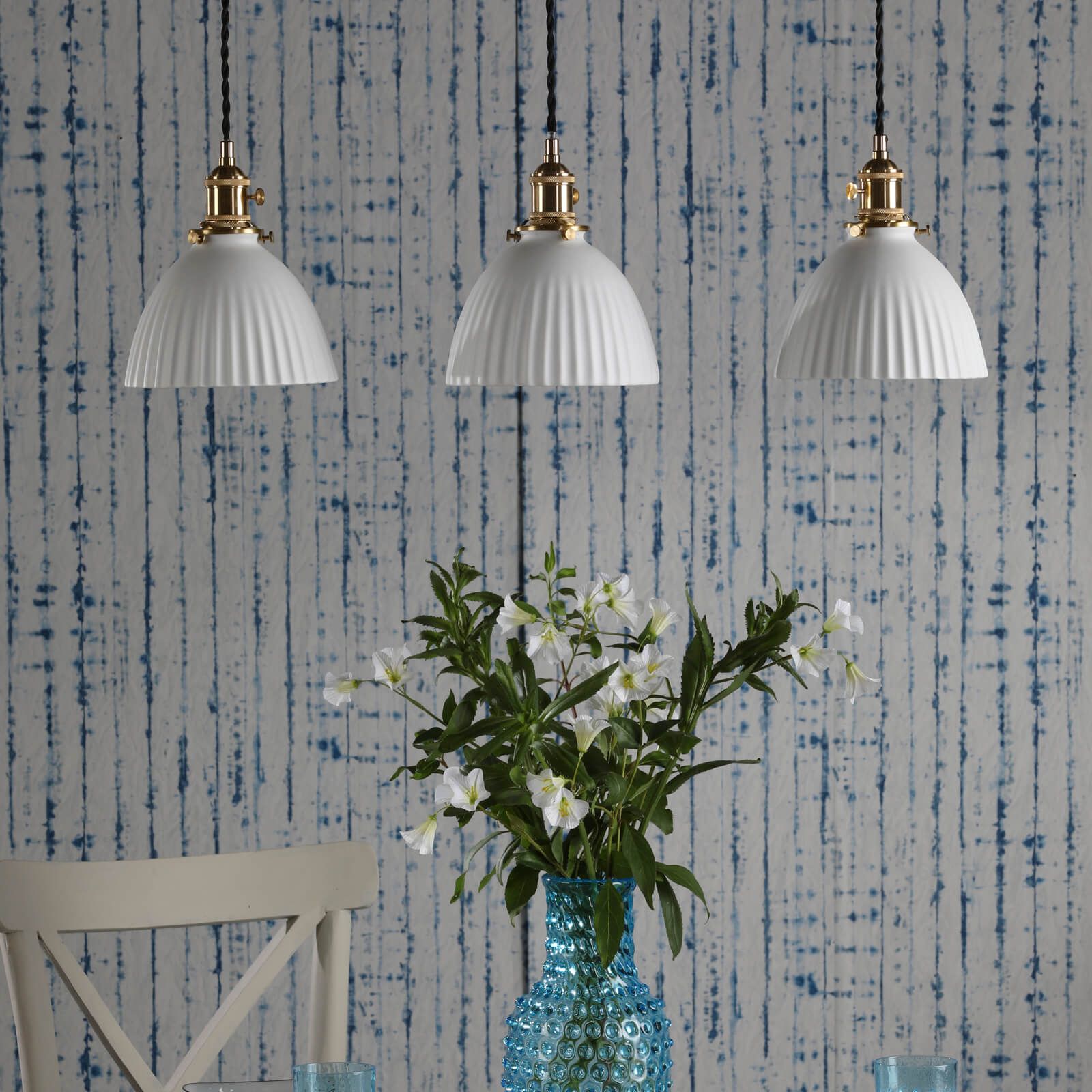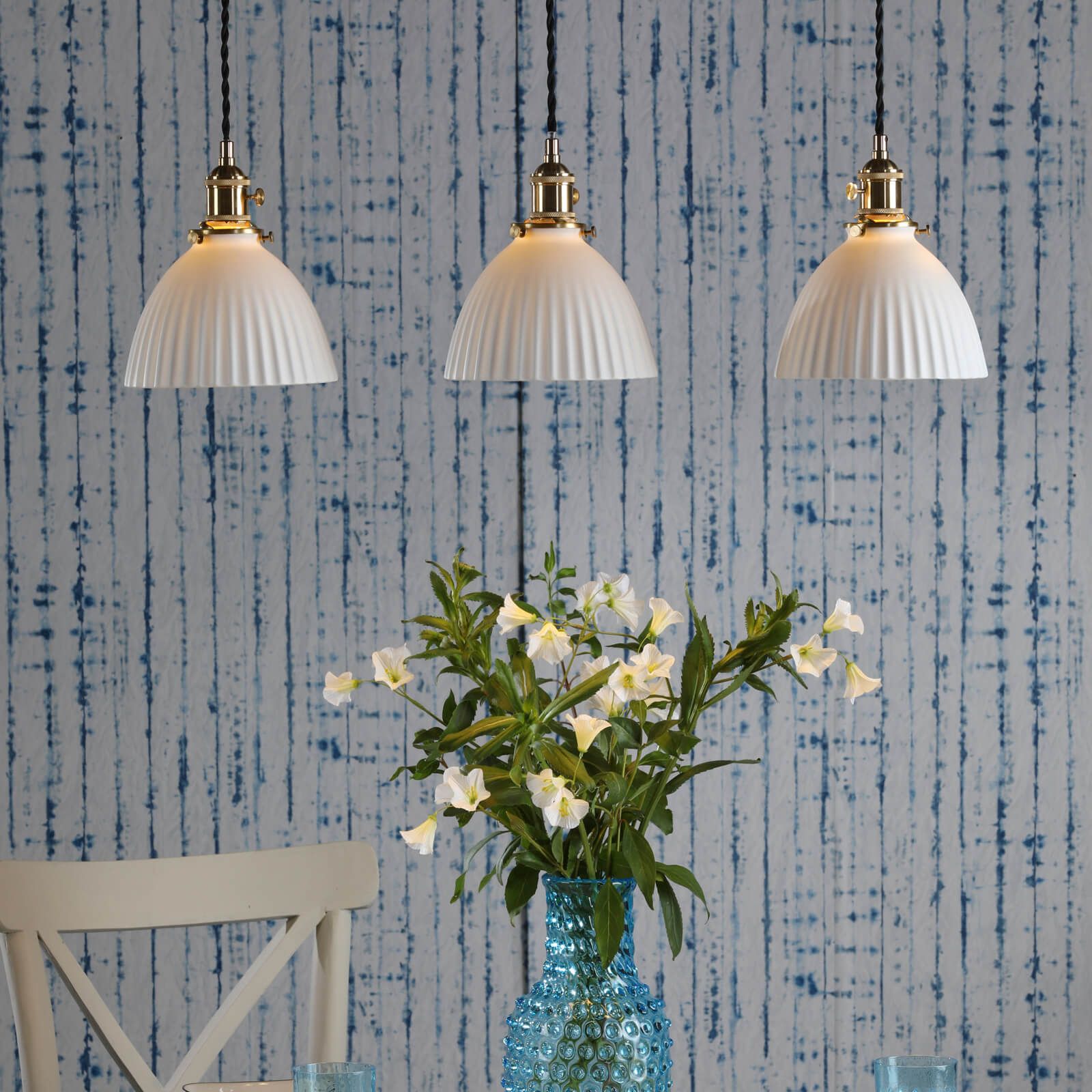 Hadano 3 Light Bar Pendant Natural Brass & Ceramic Domed Shade
