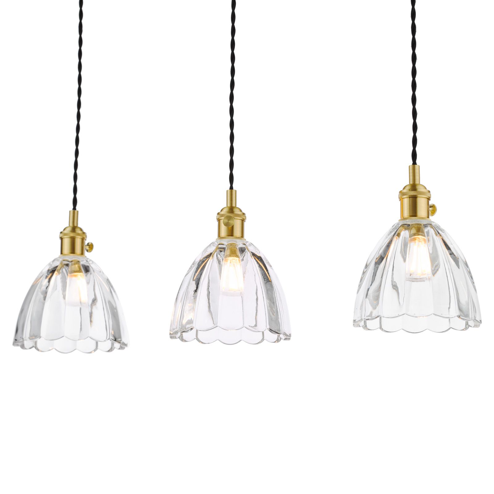 Hadano 3 Light Bar Pendant Natural Brass and Scalloped Bell Glass
