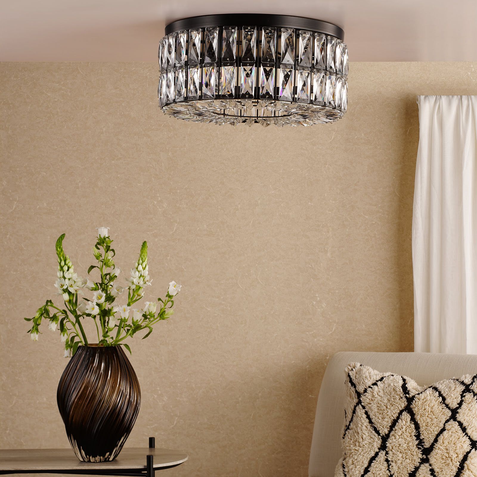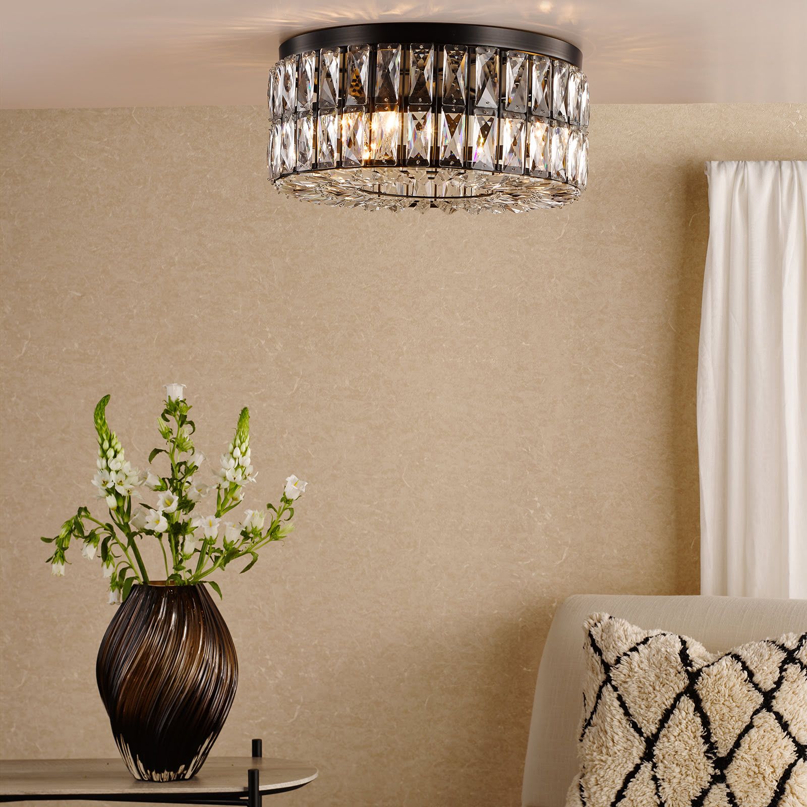 Relena 4 Light Flush Matt Black and Crystal