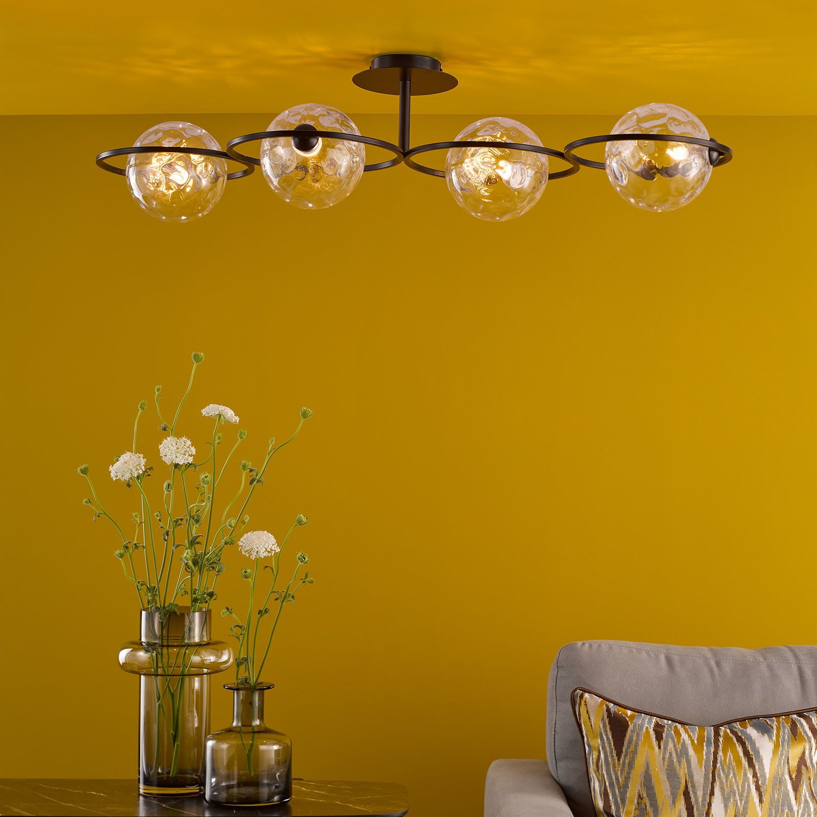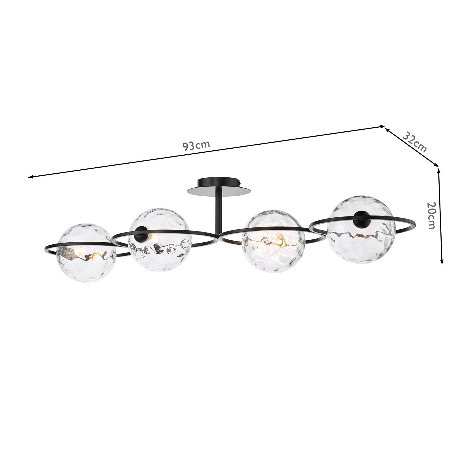 Olympus 4 Light Semi-Flush Matt Black With Clear Dimpled Glass