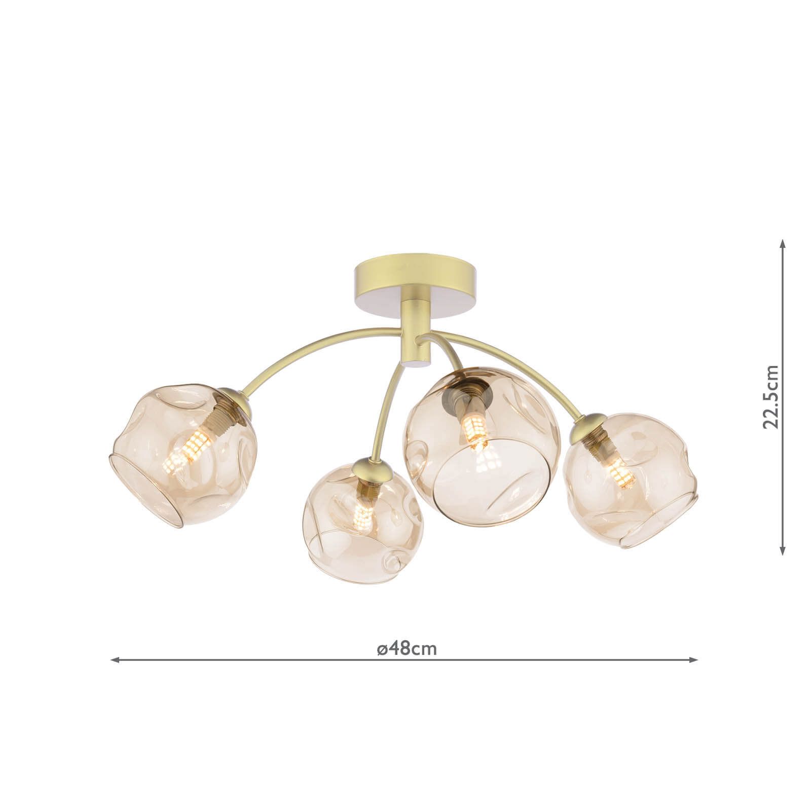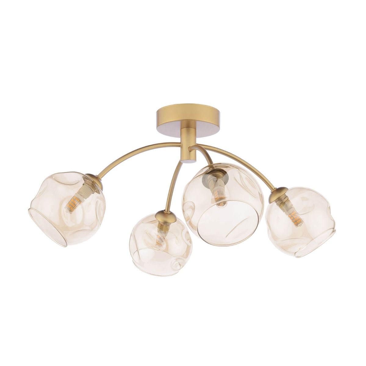 Izzy 4 Light Semi-Flush Matt Gold With Organic Amber Glass