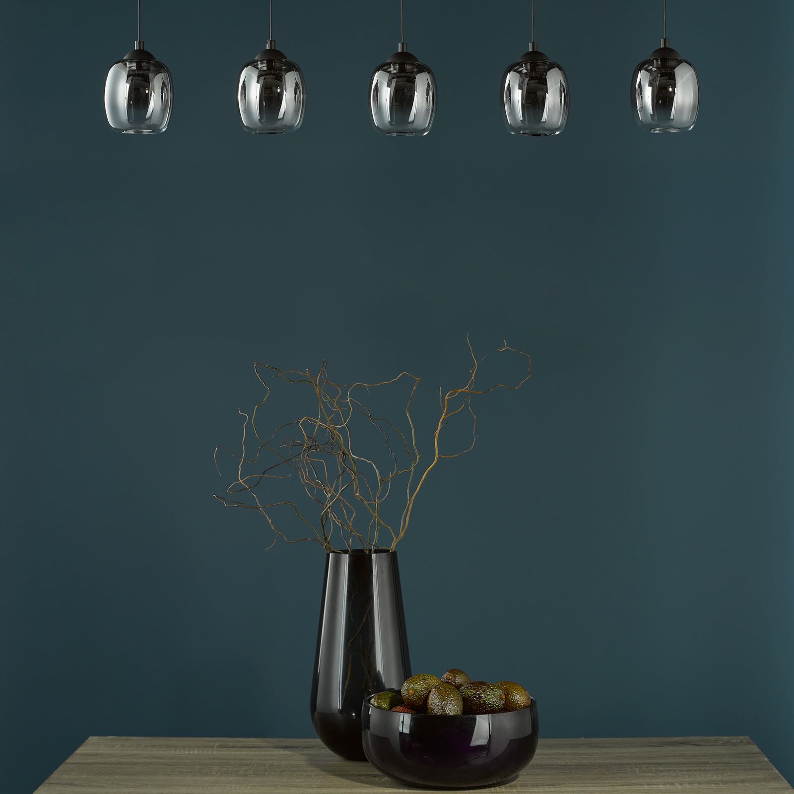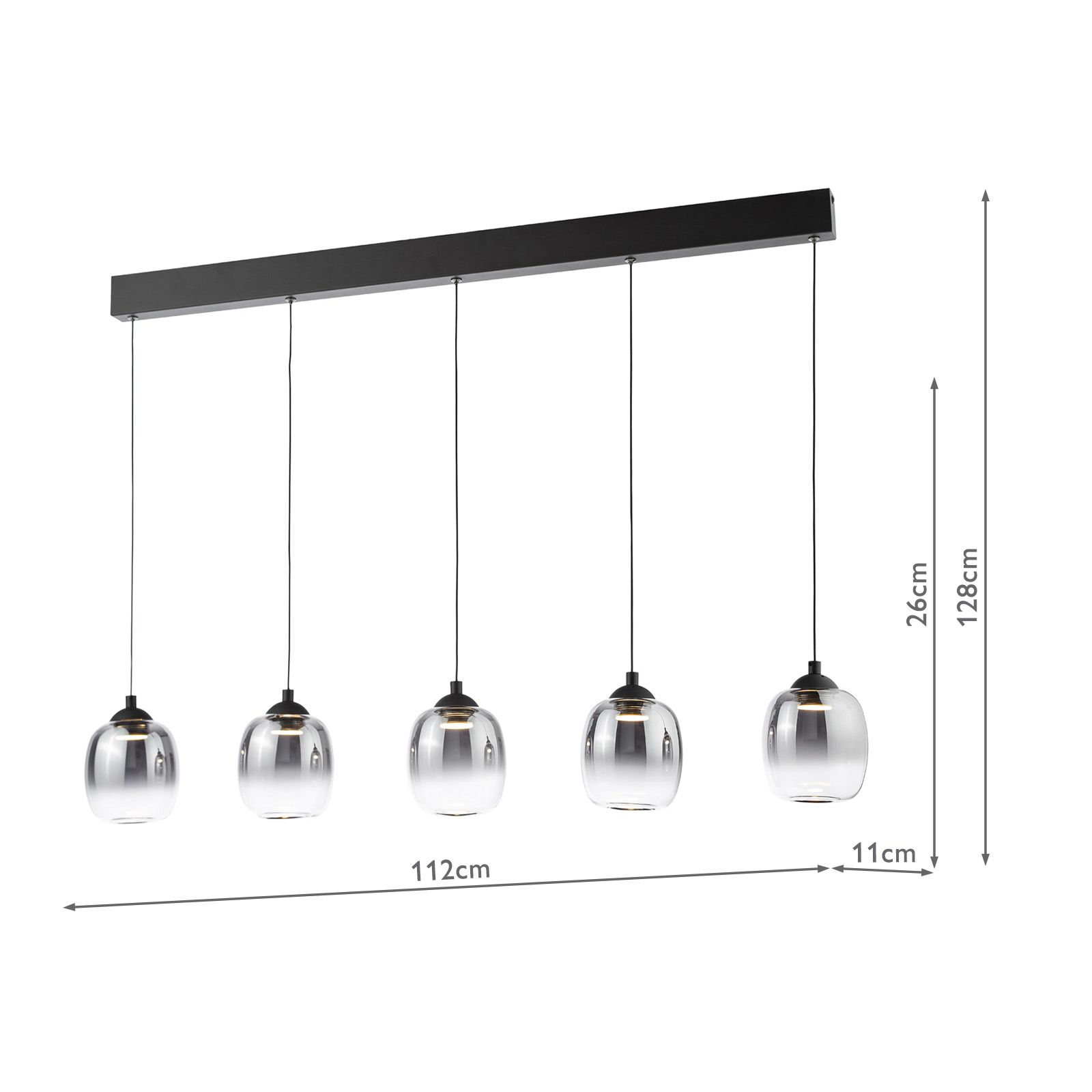 Ramona 5 Light Bar Pendant Matt Black and Smoked Ombre Glass LED