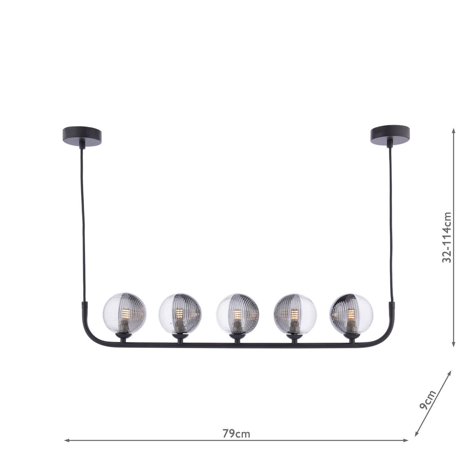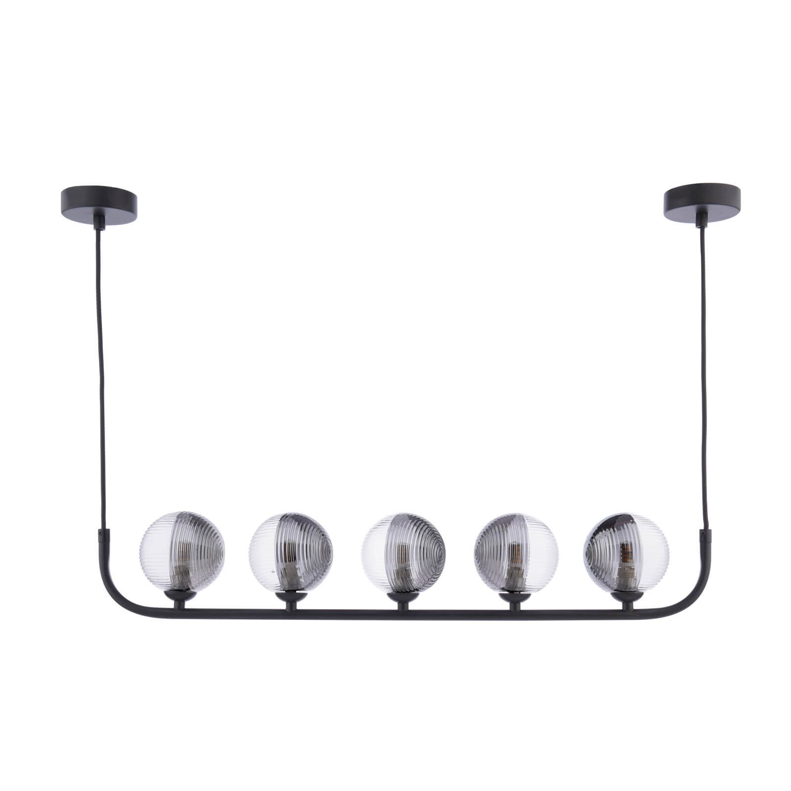 Cradle 5 Light Bar Pendant Matt Black With Smoked/Clear Ribbed Glass