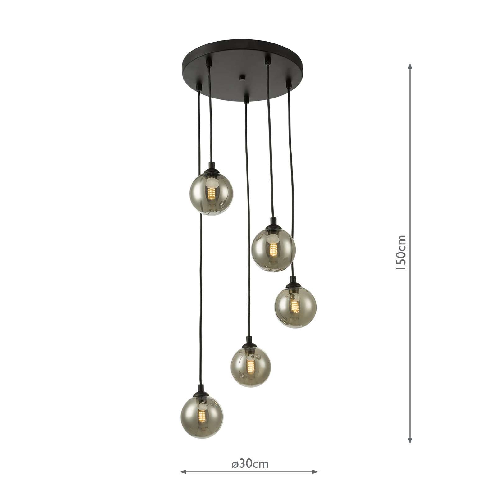 Federico 5 Light Cluster Pendant Matt Black With Smoked Glass