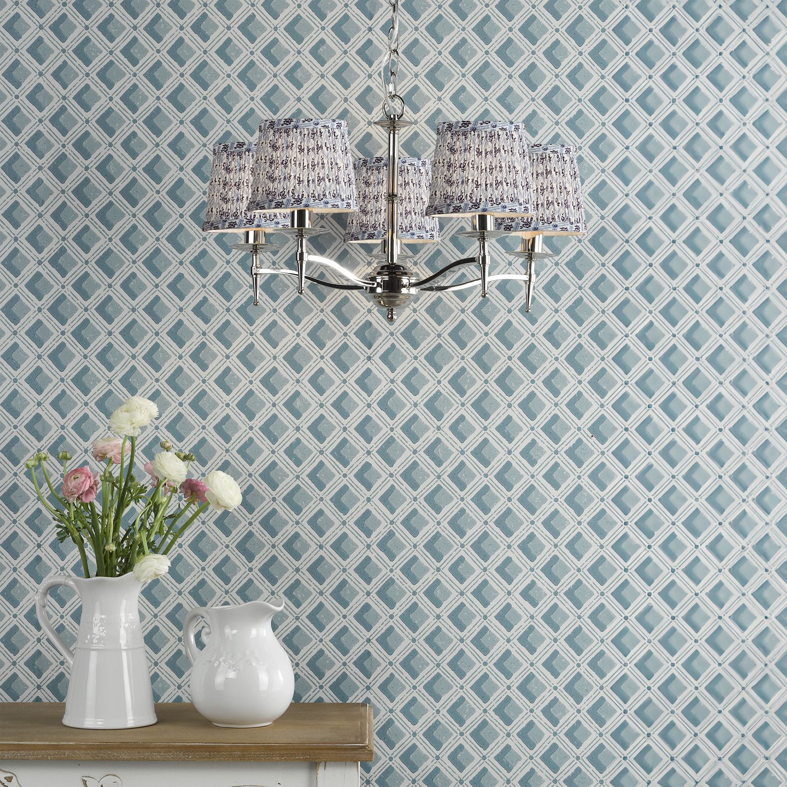 The Marble Hill comes complete with a Blue Cotton Mix Candle shade.