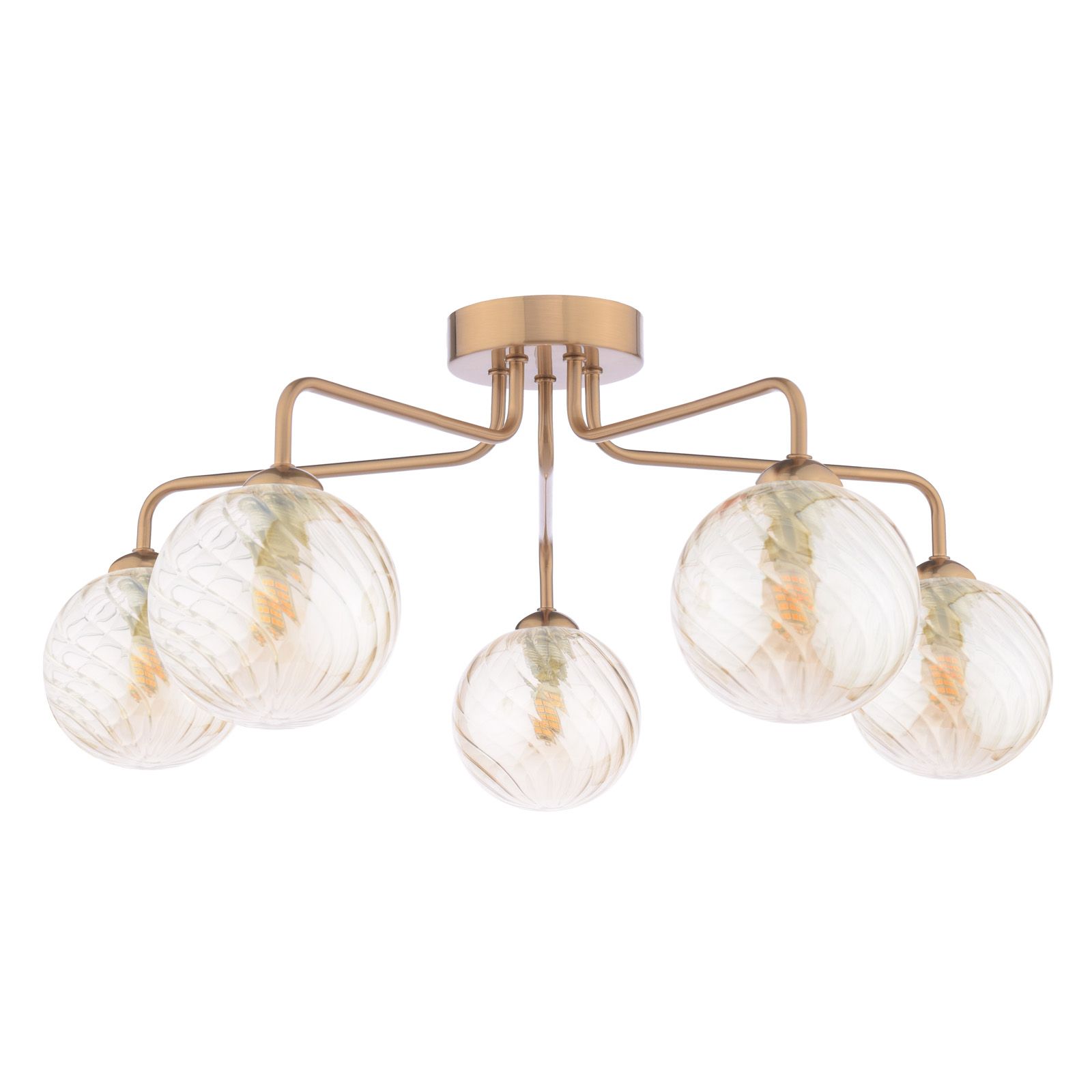 Feya 5 Light Semi-Flush Antique Bronze With Twisted Amber Glass