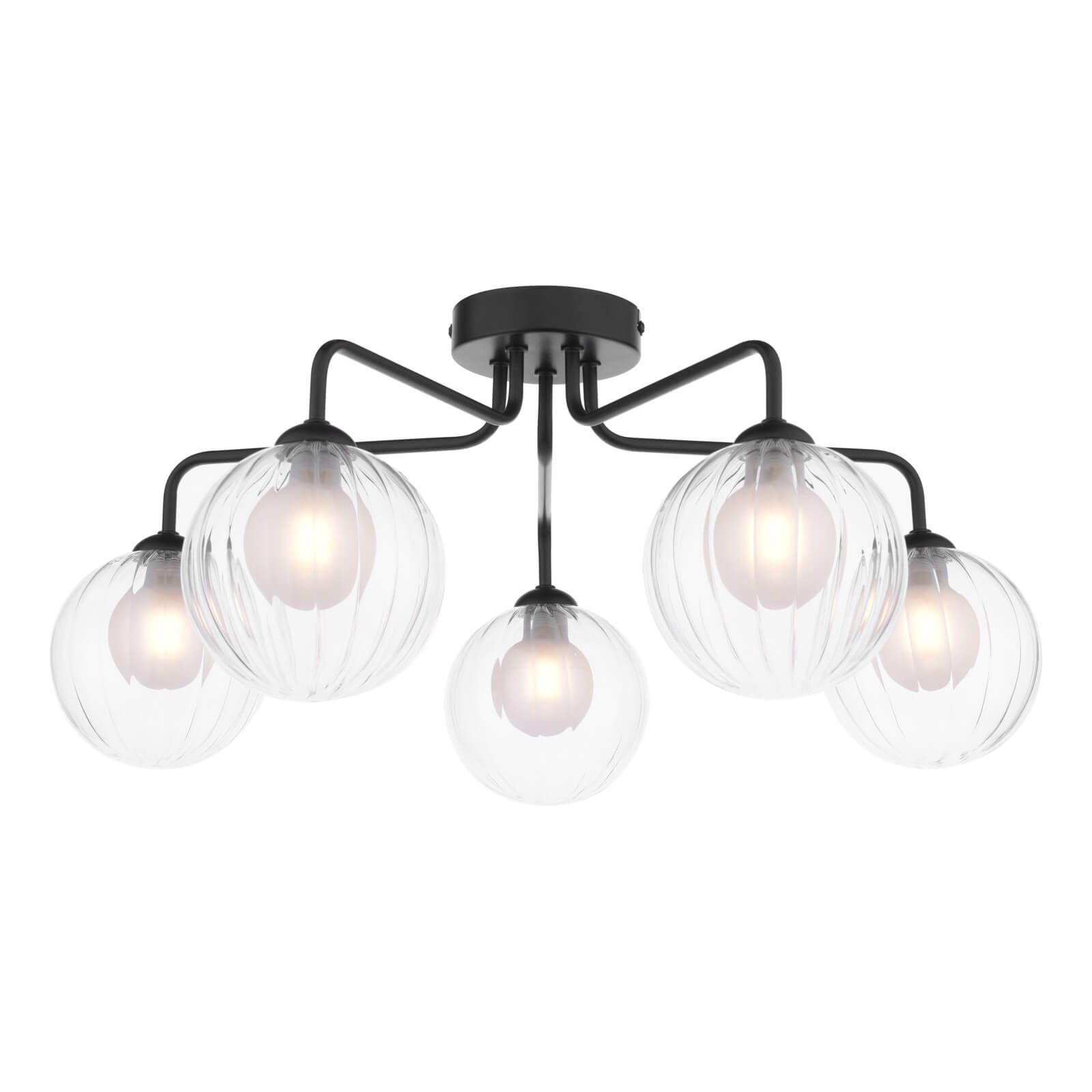 Feya 5 Light Semi Flush Matt Black With Clear/Opal Glass