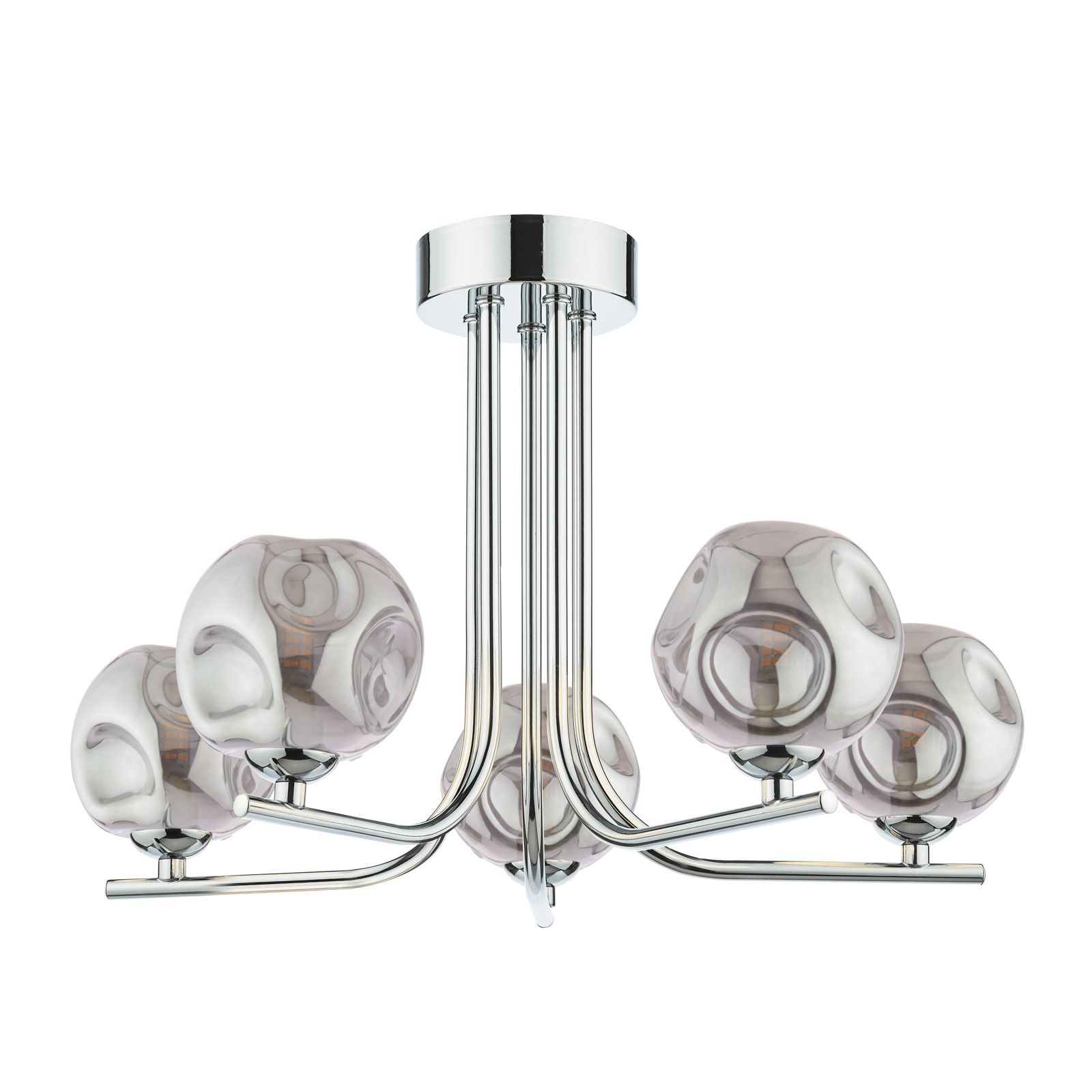 Cradle 5 Light Semi Flush Polished Chrome With Closed Organic Smoked Glass