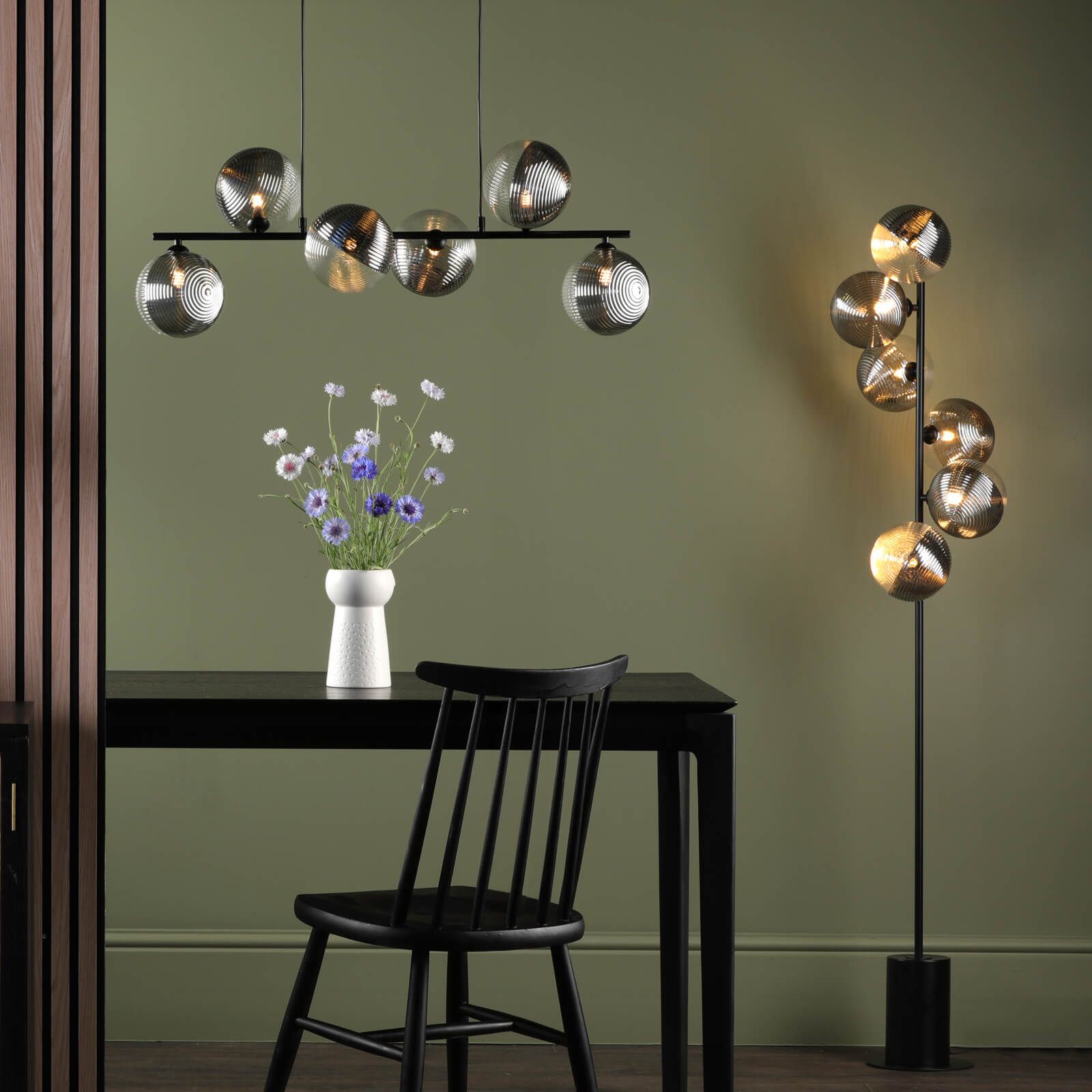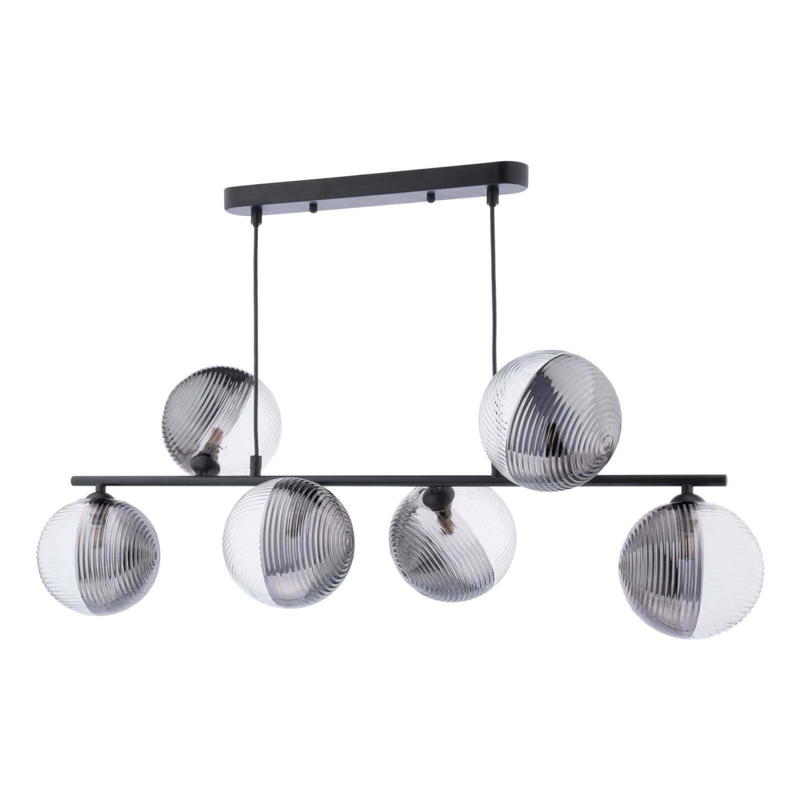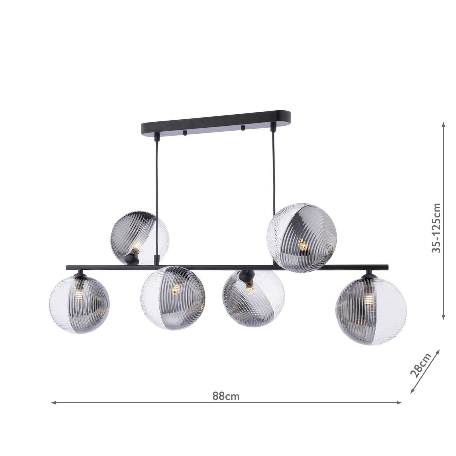 Spiral 6 Light Bar Pendant Matt Black With Smoked/Clear Ribbed Glass
