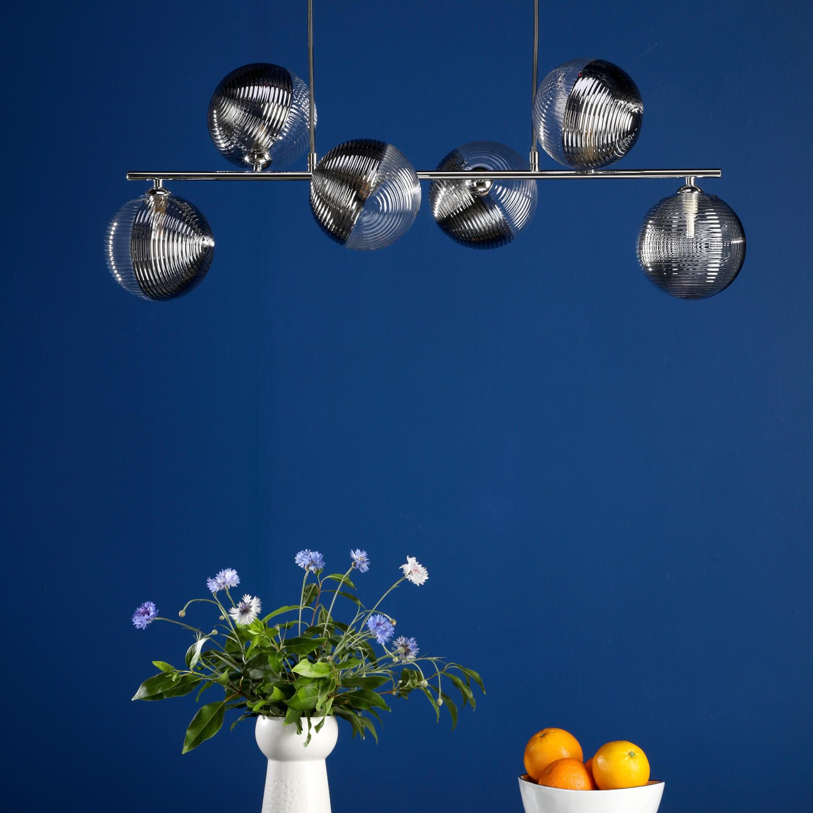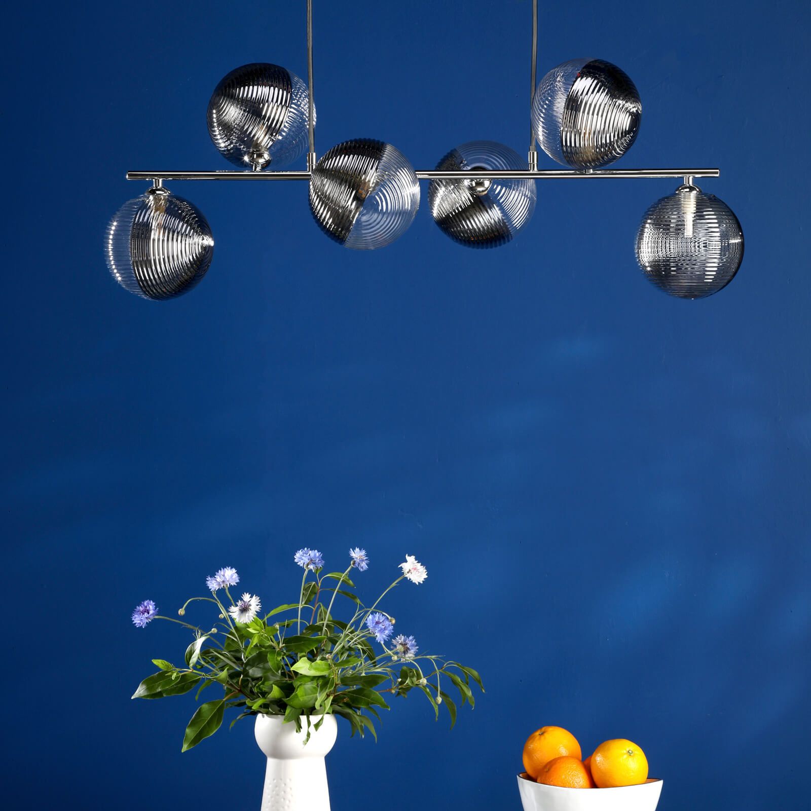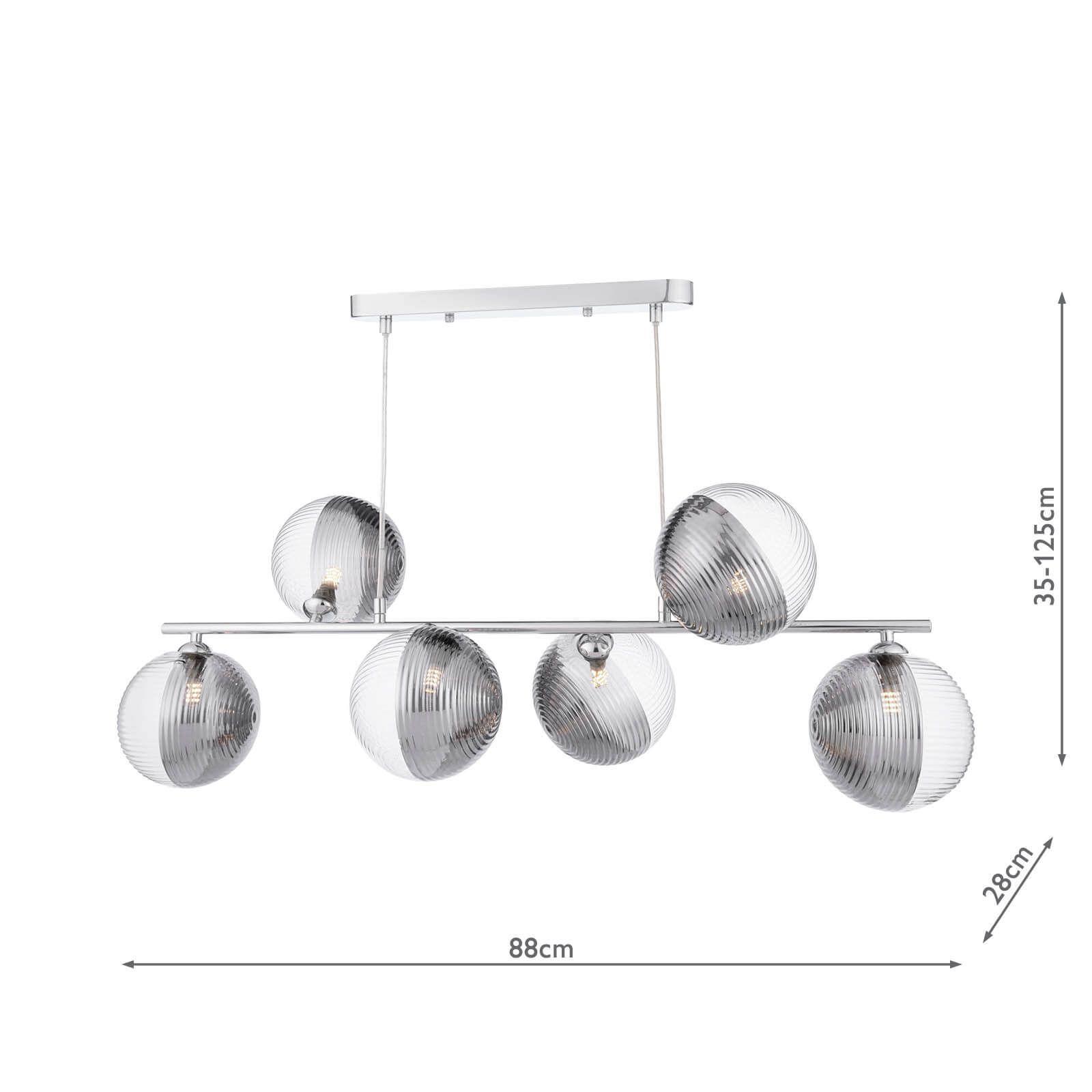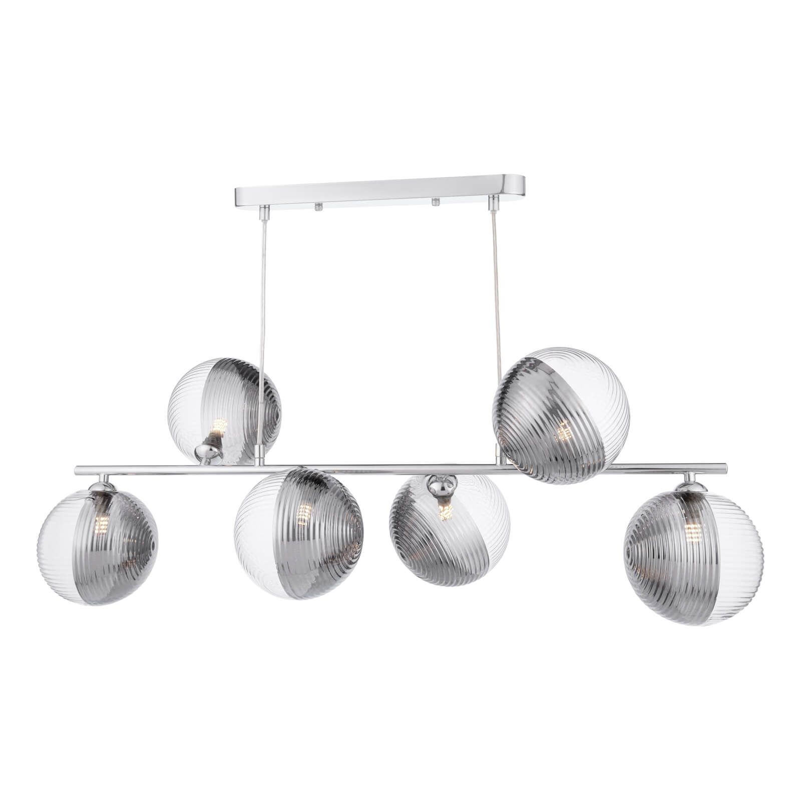 Spiral 6 Light Bar Pendant Polished Chrome With Smoked/Clear Ribbed Glass
